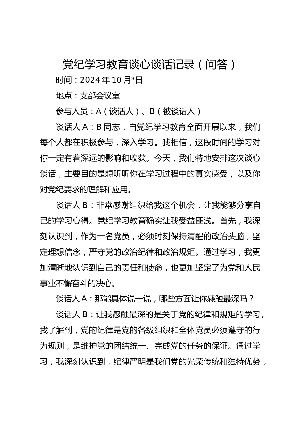 2024黨紀(jì)學(xué)習(xí)教育談心談話記錄(問答)VIP免費(fèi)