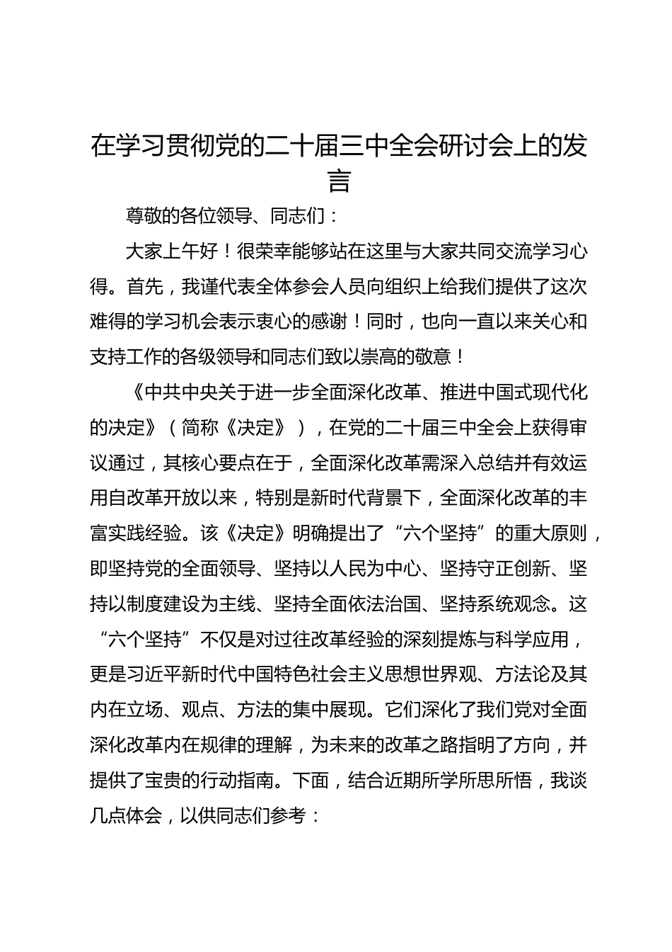 在學(xué)習(xí)貫徹黨的二十屆三中全會(huì)研討會(huì)上的發(fā)言VIP免費(fèi)