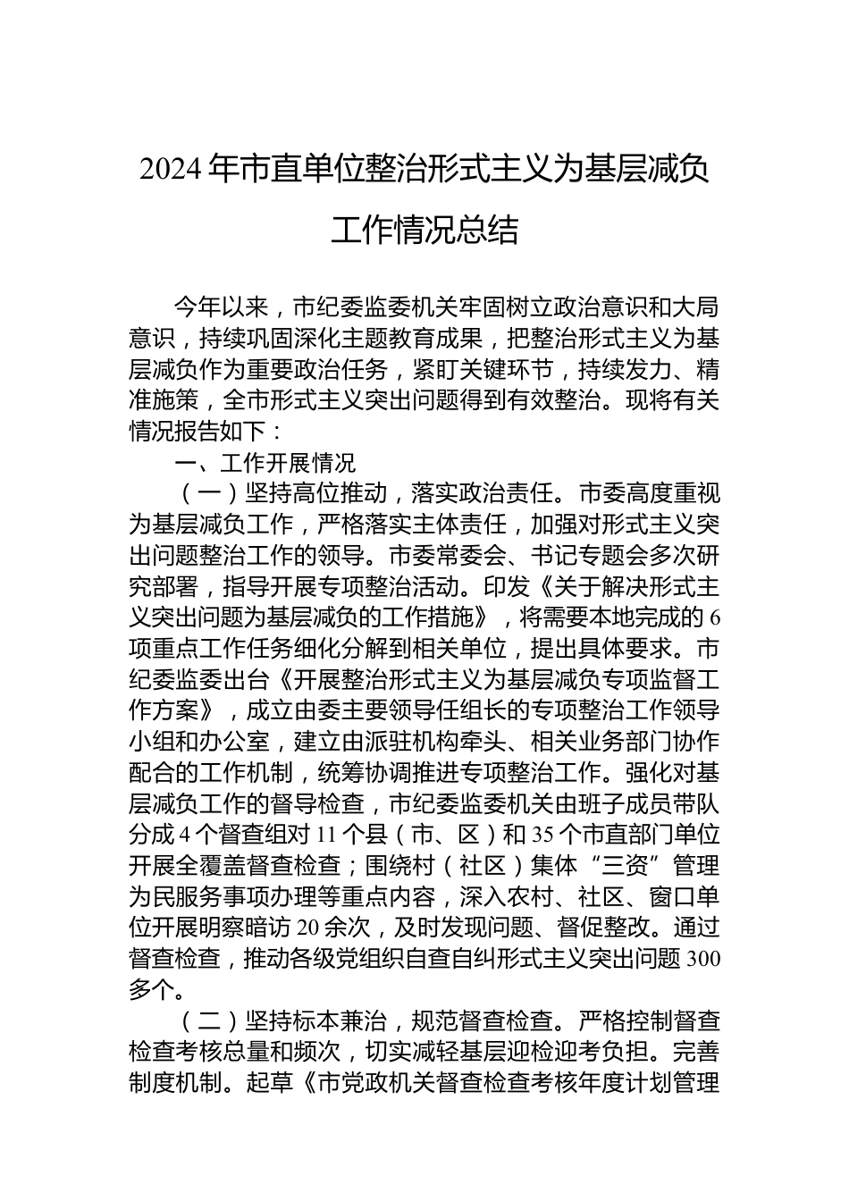 2024年市直單位整治形式主義為基層減負(fù)工作情況總結(jié)VIP免費(fèi)