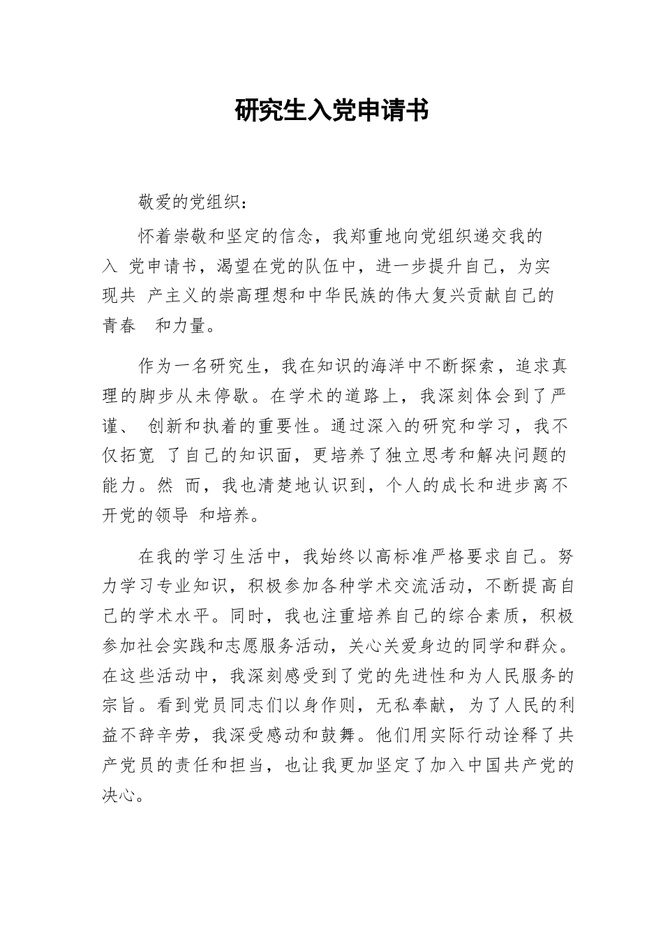 2024年研究生入黨申請書VIP免費