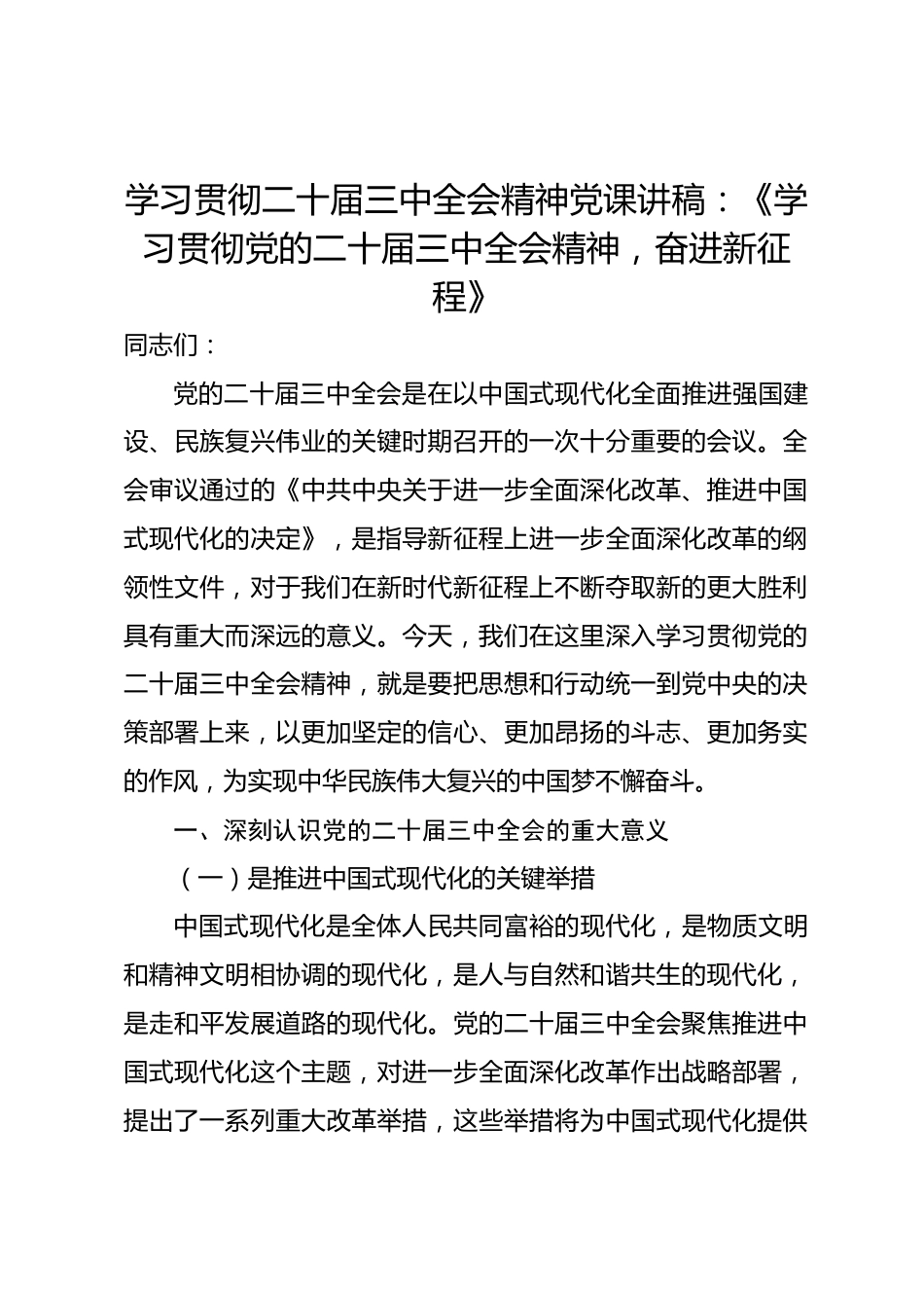 學習貫徹二十屆三中全會精神黨課講稿:《學習貫徹黨的二十屆三中全會精神,奮進新征程》VIP免費