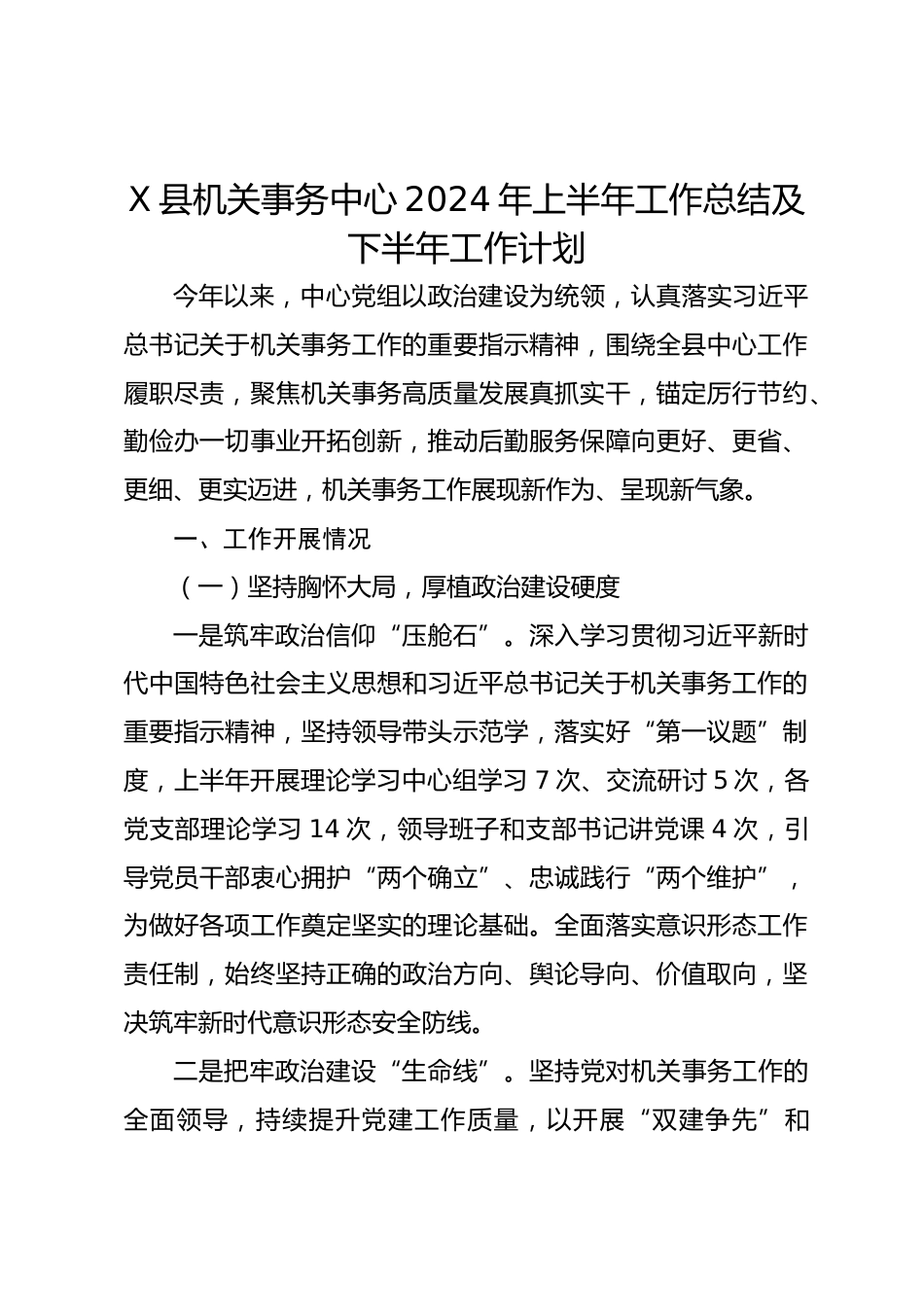 X縣機(jī)關(guān)事務(wù)中心2024年上半年工作總結(jié)及下半年工作計劃VIP免費