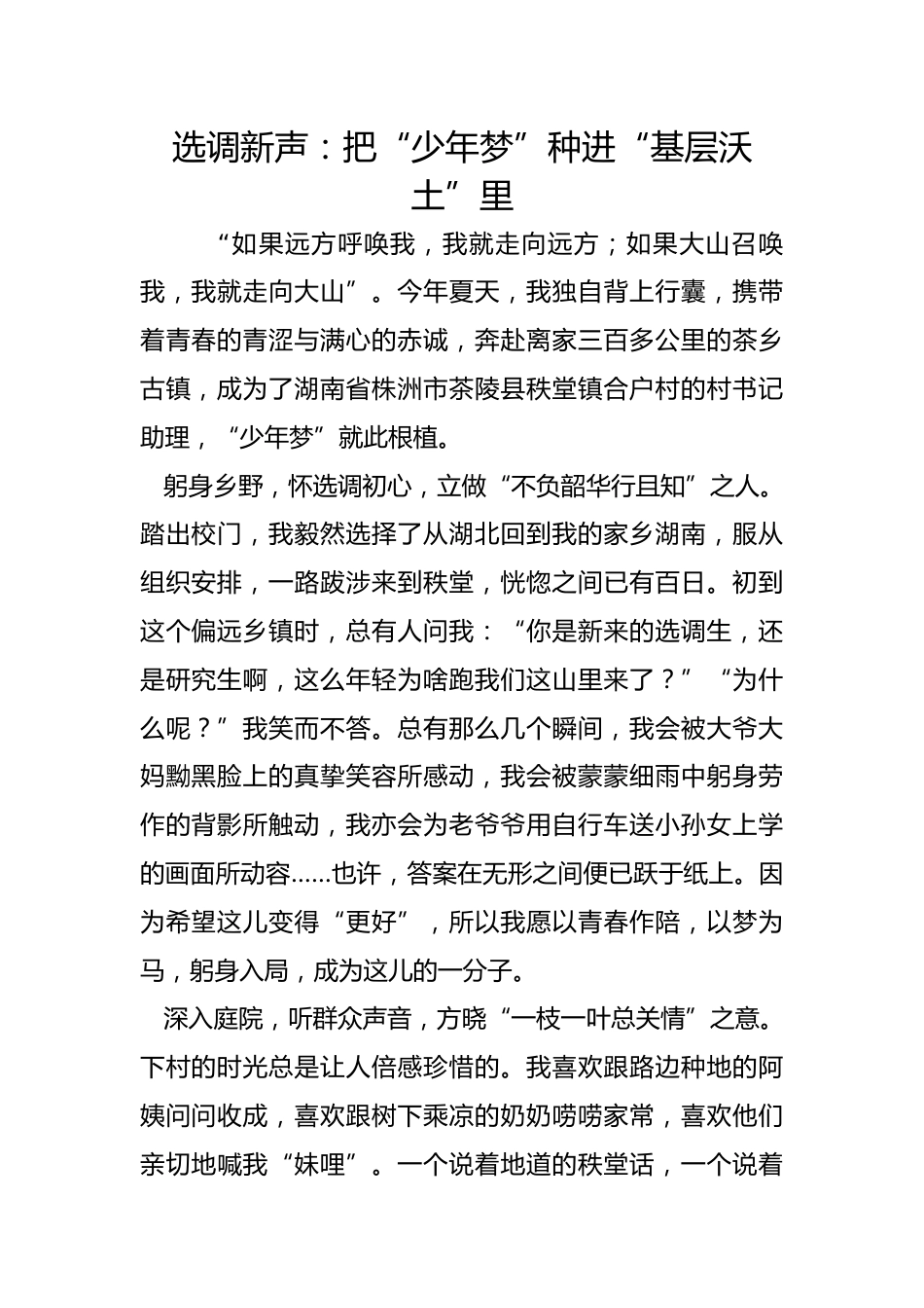 選調(diào)新聲:把“少年夢(mèng)”種進(jìn)“基層沃土”里VIP免費(fèi)