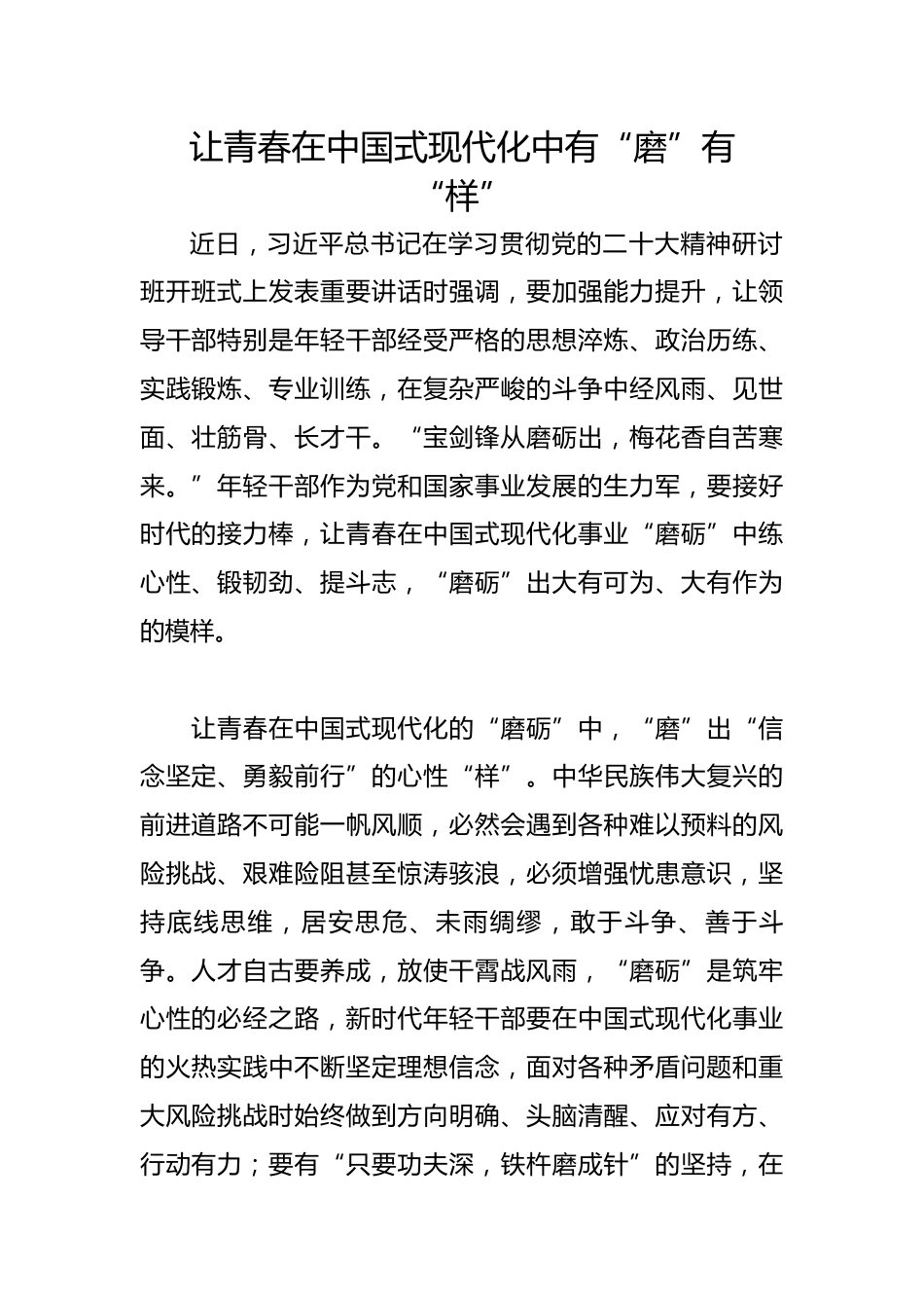 讓青春在中國(guó)式現(xiàn)代化中有“磨”有“樣”VIP免費(fèi)