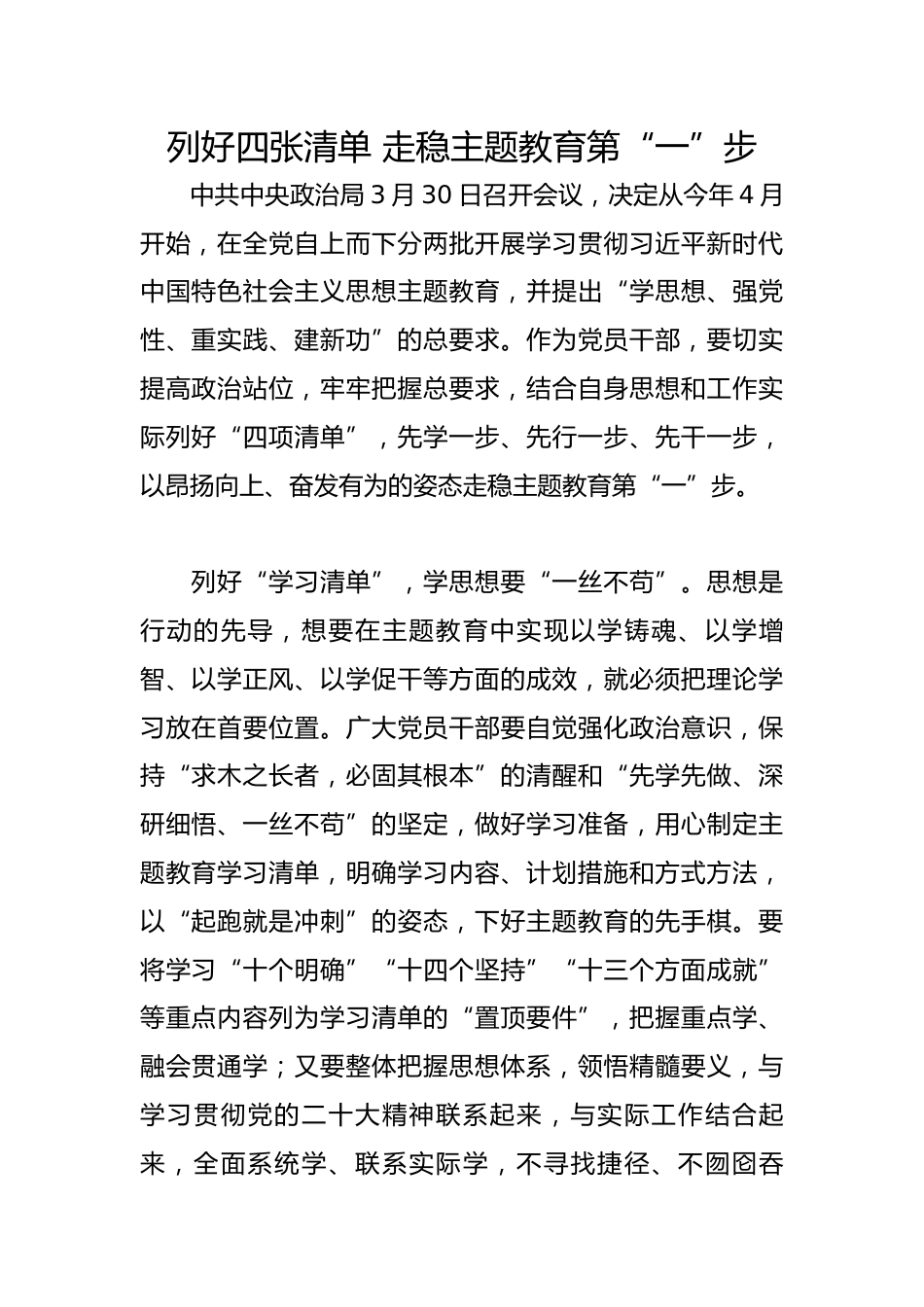 列好四張清單 走穩(wěn)主題教育第“一”步VIP免費