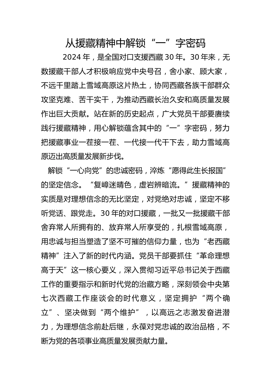 從援藏精神中解鎖“一”字密碼VIP免費(fèi)