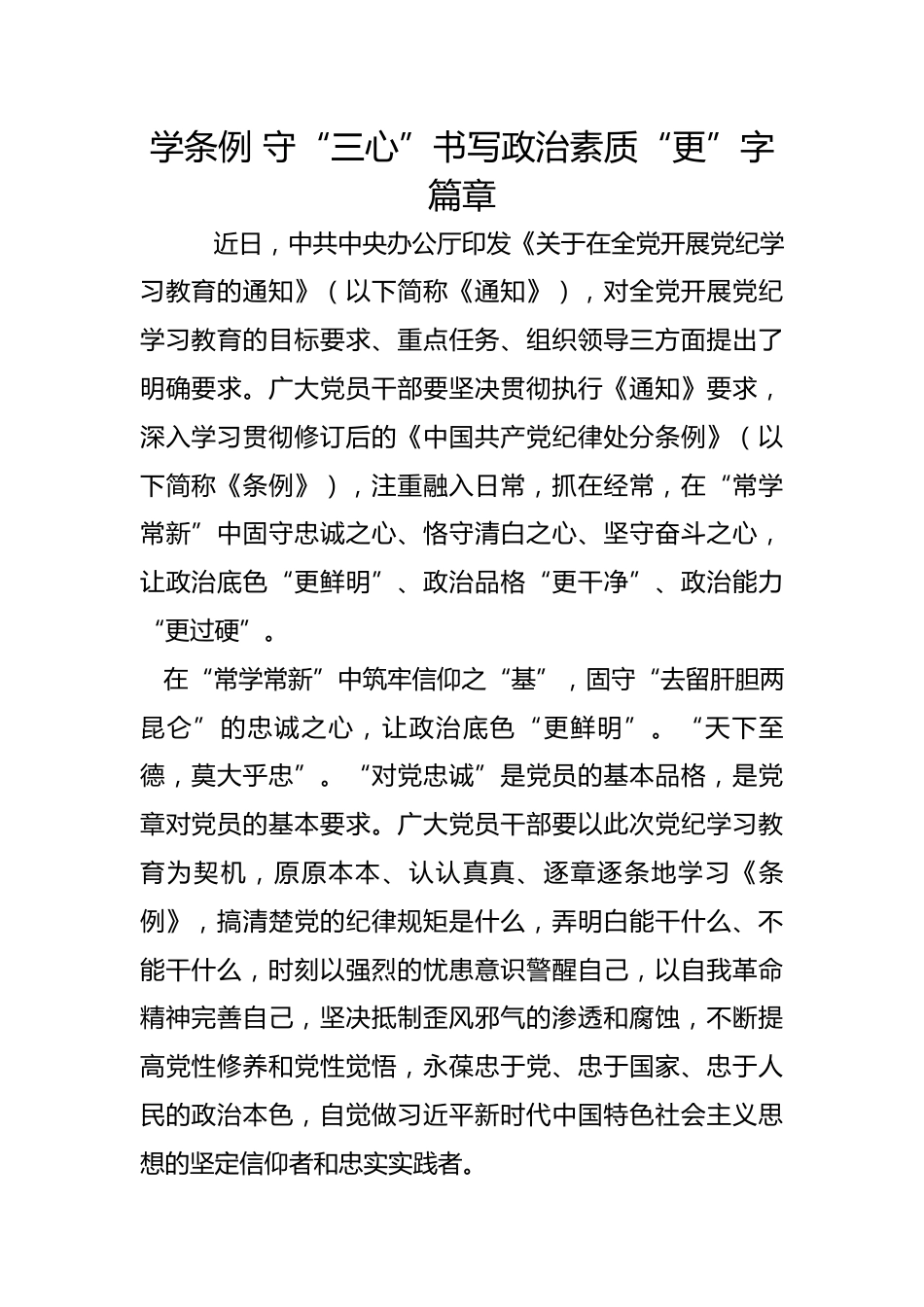 學條例 守“三心”書寫政治素質(zhì)“更”字篇章VIP免費