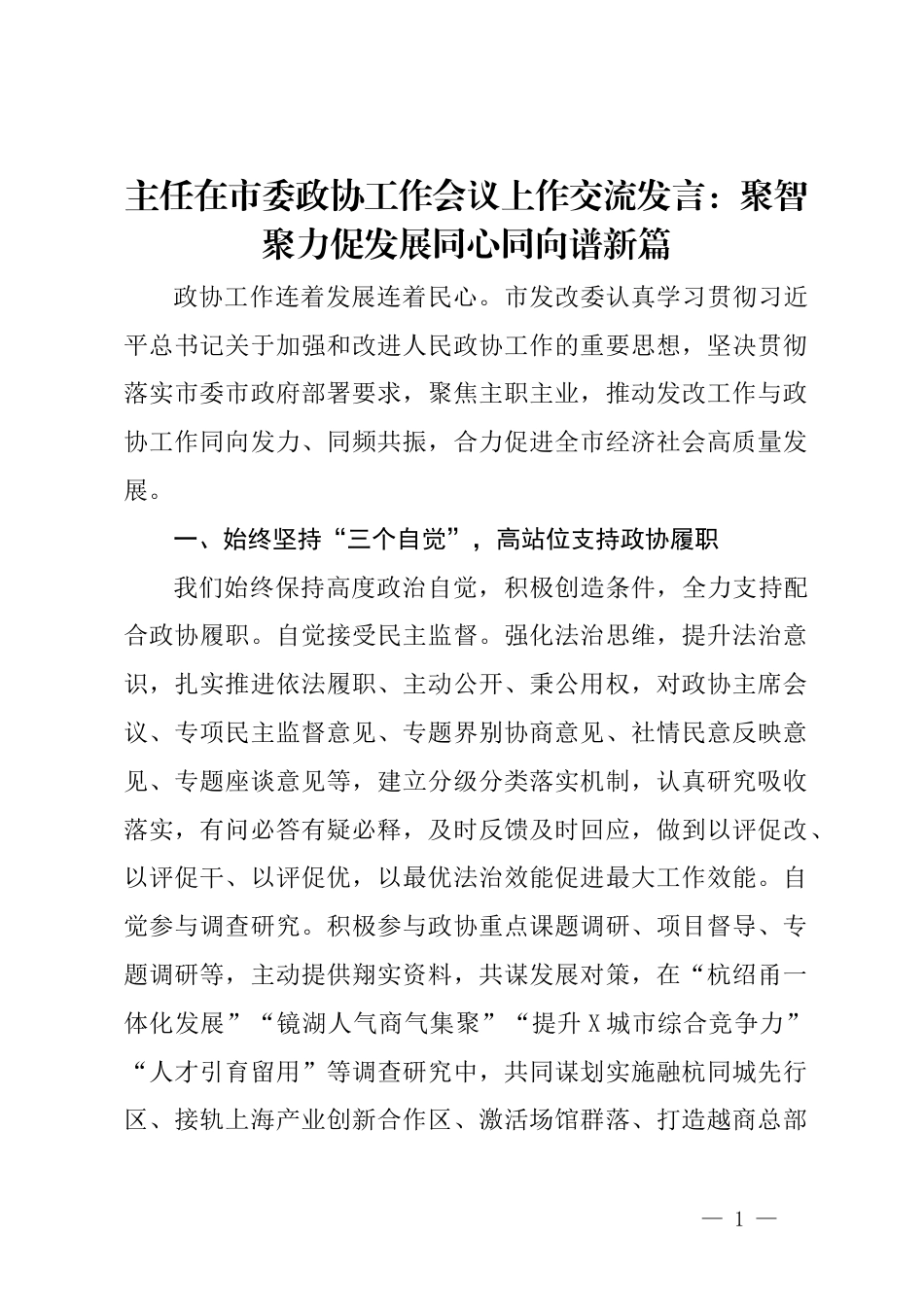 主任在市委政協(xié)工作會議上作交流發(fā)言:聚智聚力促發(fā)展同心同向譜新篇VIP免費(fèi)