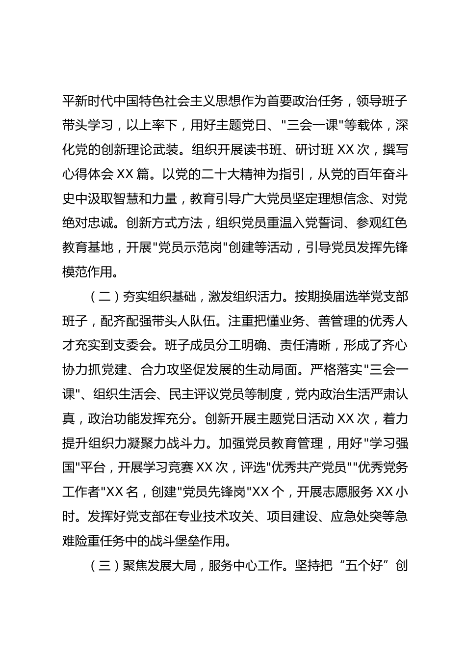 2024年“五個(gè)好”黨支部創(chuàng)建開展情況的匯報(bào)VIP免費(fèi)
