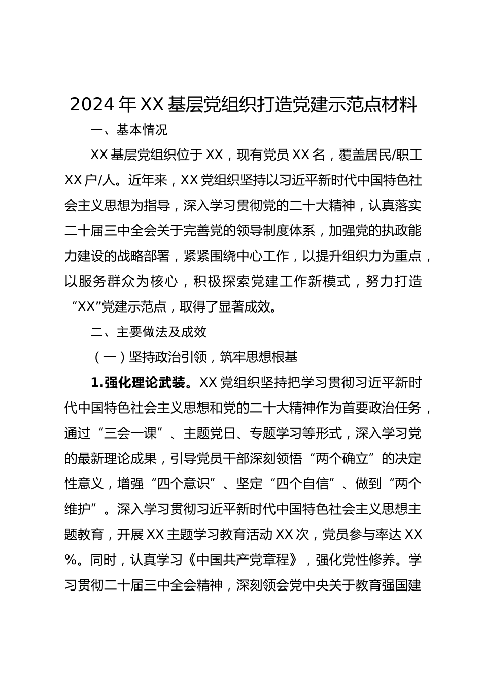 2024年XX基層黨組織打造黨建示范點(diǎn)材料VIP免費(fèi)