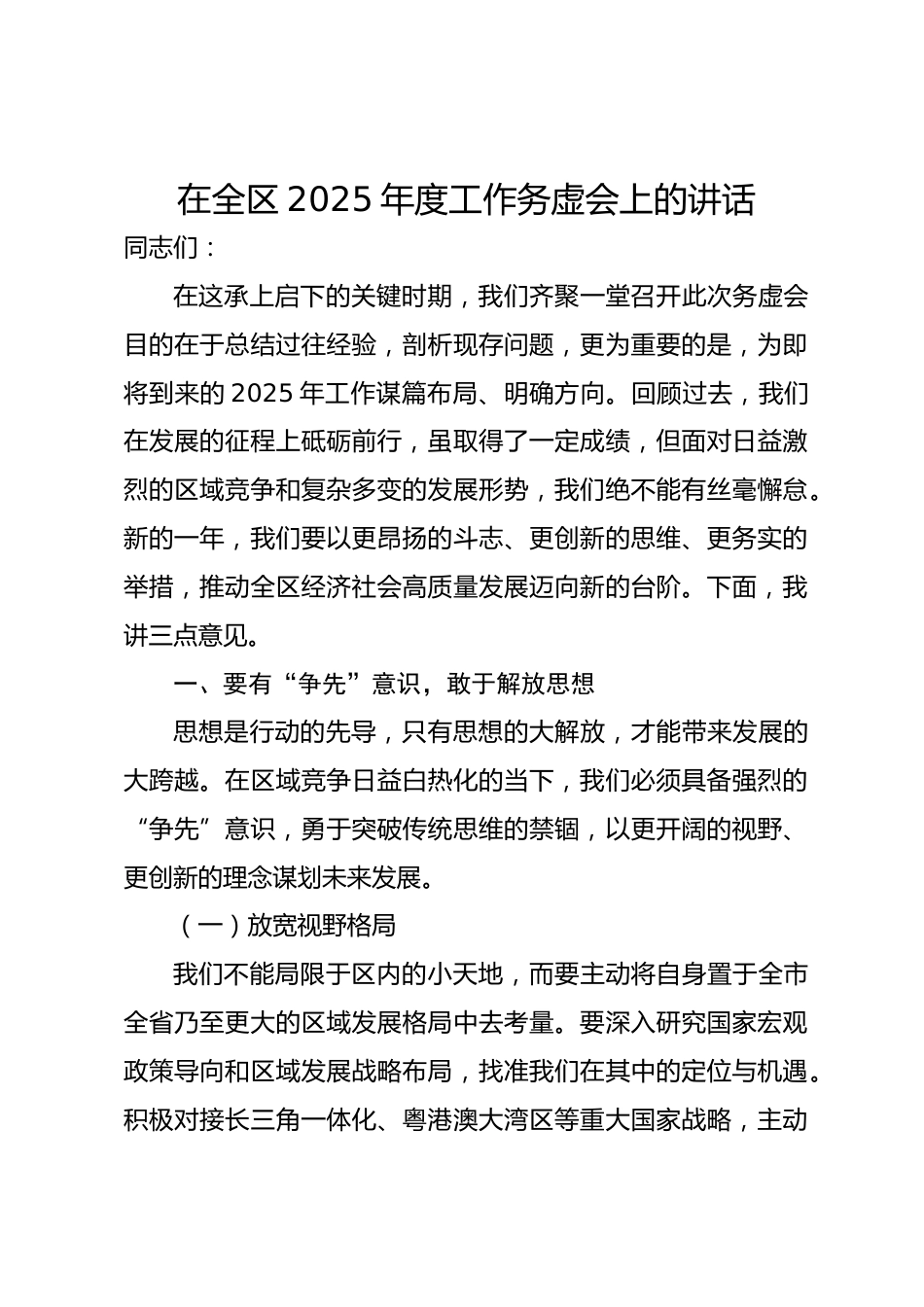 在全區(qū)2025年度工作務(wù)虛會(huì)上的講話VIP免費(fèi)