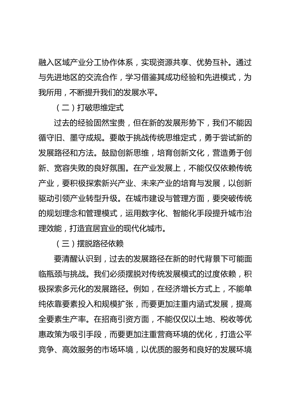 在全區(qū)2025年度工作務(wù)虛會(huì)上的講話同志們:在這承上啟下的關(guān)鍵時(shí)期,我們齊聚一堂召開(kāi)此次務(wù)虛會(huì)目的在于總結(jié)過(guò)往經(jīng)驗(yàn),剖析現(xiàn)存問(wèn)題,更為重要的是,為即將到來(lái)的2025年工作謀篇布局、明確方向?;仡欉^(guò)去,我們?cè)诎l(fā)展的征程上砥礪前行,雖取得了一定成績(jī),但面對(duì)日益激烈的區(qū)域競(jìng)爭(zhēng)和復(fù)雜多變的發(fā)展形勢(shì),我們絕不能有絲毫懈怠。新的一年,我們要以更昂揚(yáng)的斗志、更創(chuàng)新的思維、更務(wù)實(shí)的舉措,推動(dòng)全區(qū)經(jīng)濟(jì)社會(huì)高質(zhì)量發(fā)展邁向新的臺(tái)階。下面,我講三點(diǎn)意見(jiàn)。一、要有“爭(zhēng)先”意識(shí),敢于解放思想思想是行動(dòng)的先導(dǎo),只有思想的大解放,才能帶來(lái)發(fā)展的大跨越。在區(qū)域競(jìng)爭(zhēng)日...