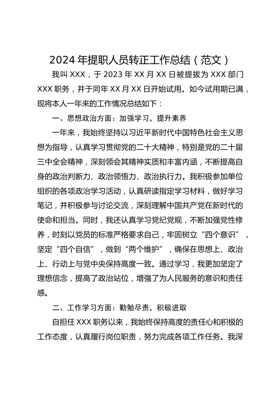 2024年提職人員轉(zhuǎn)正工作總結(jié)(范文)VIP免費