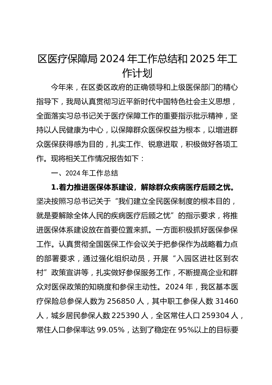 區(qū)醫(yī)療保障局2024年工作總結(jié)和2025年工作計劃VIP免費