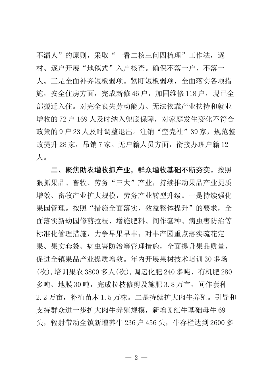 鎮(zhèn)2024年政府工作報(bào)告各位代表:現(xiàn)在,我代表鎮(zhèn)人民政府向大會(huì)作工作報(bào)告,請(qǐng)予審議,并請(qǐng)各位列席人員提出意見(jiàn)和建議。第一部分,2024年政府工作回顧今年以來(lái),鎮(zhèn)黨委、政府堅(jiān)持以黨的二十大、二十屆三中、全會(huì)和習(xí)近平新時(shí)代中國(guó)特色社會(huì)主義思想為指導(dǎo),全面貫徹習(xí)近平總書記視察甘肅重要講話和指示精神,認(rèn)真落實(shí)中央、省市縣委各項(xiàng)決策部署,牢固樹(shù)立五大發(fā)展理念,全面實(shí)施鄉(xiāng)村振興戰(zhàn)略,持續(xù)優(yōu)機(jī)制,強(qiáng)措施,抓落實(shí),各項(xiàng)工作取得了階段性成效。一、聚焦突出問(wèn)題抓整改,成果鞏固短板全面清零緊盯全鎮(zhèn)脫貧攻堅(jiān)成果鞏固,圍繞短板弱項(xiàng),全面落實(shí)整改措施。一是全面...