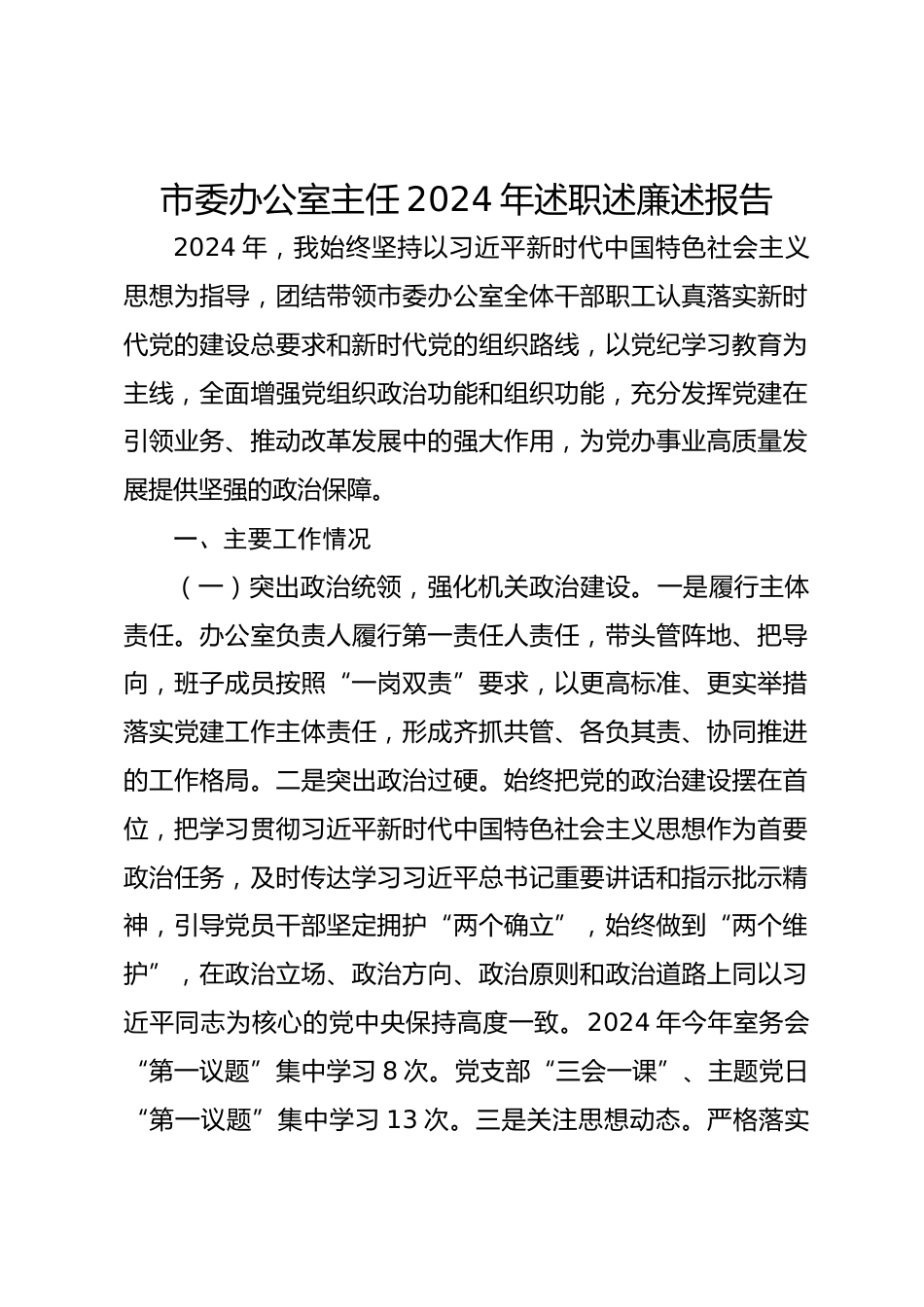 市委辦公室主任2024年述職述廉述報告VIP免費