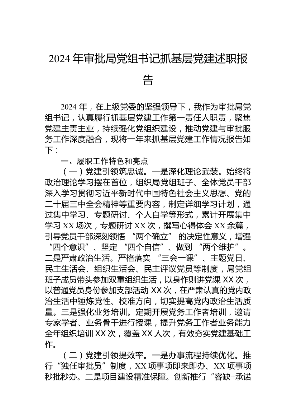 2024年審批局黨組書(shū)記抓基層黨建述職報(bào)告VIP免費(fèi)