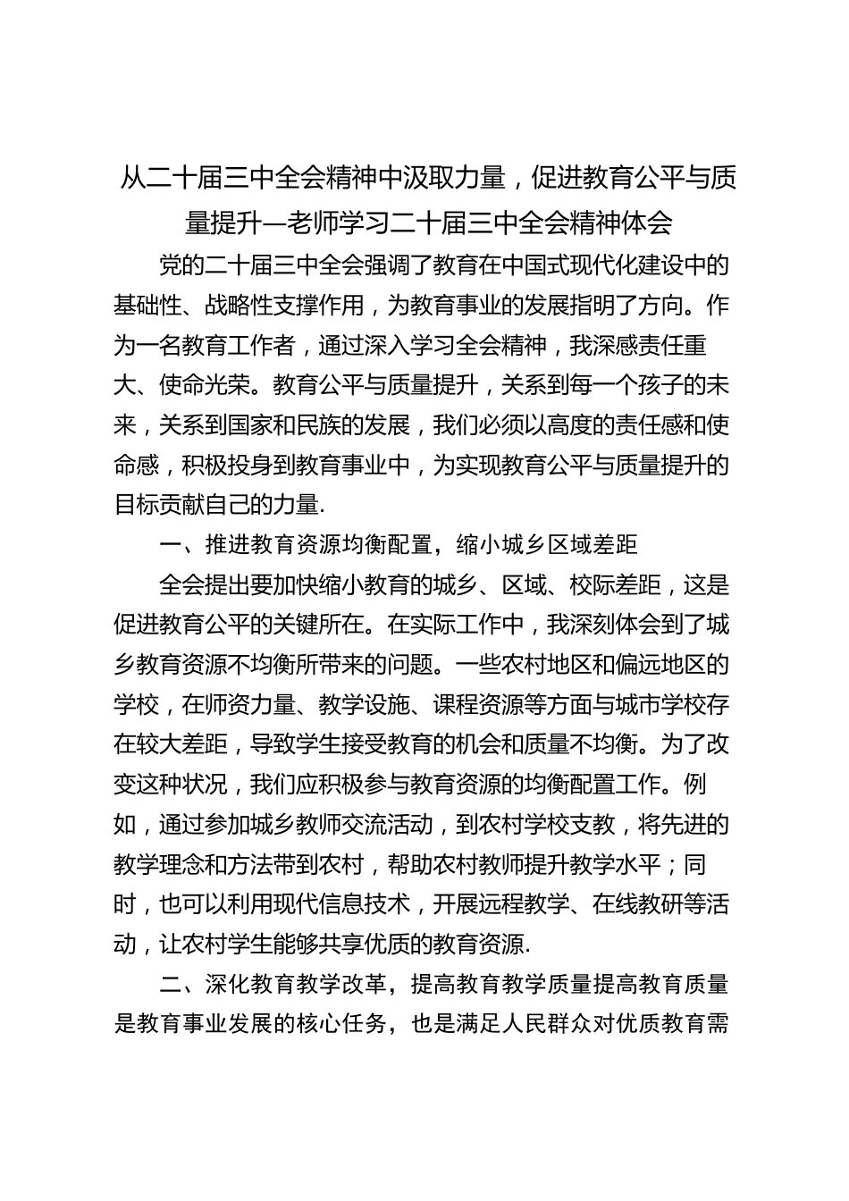 從二十屆三中全會精神中汲取力量,促進(jìn)教育公平與質(zhì)量提升—老師學(xué)習(xí)二十屆三中全會精神體會VIP免費(fèi)
