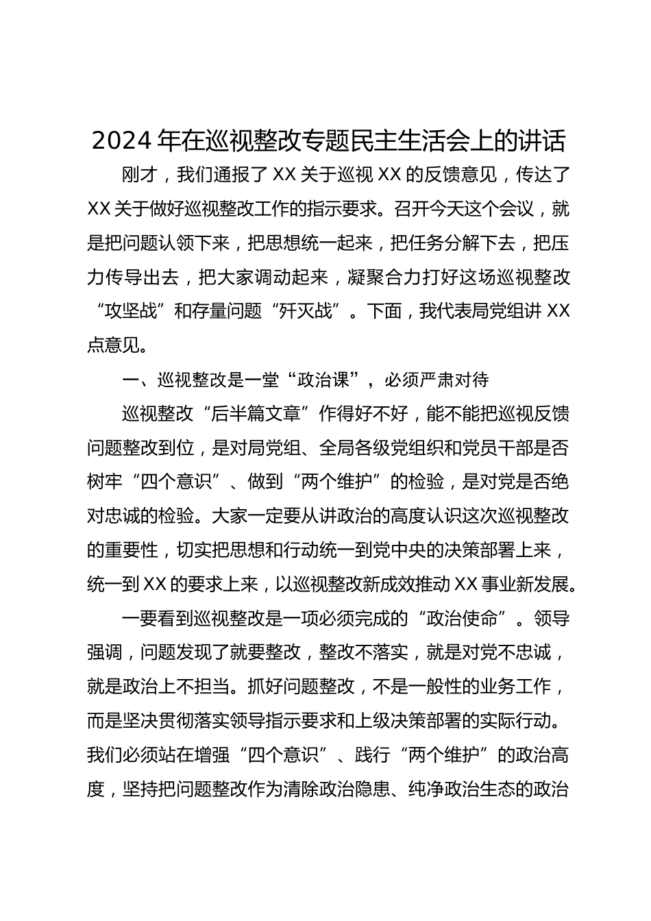 2024年在巡視整改專題民主生活會(huì)上的講話VIP免費(fèi)