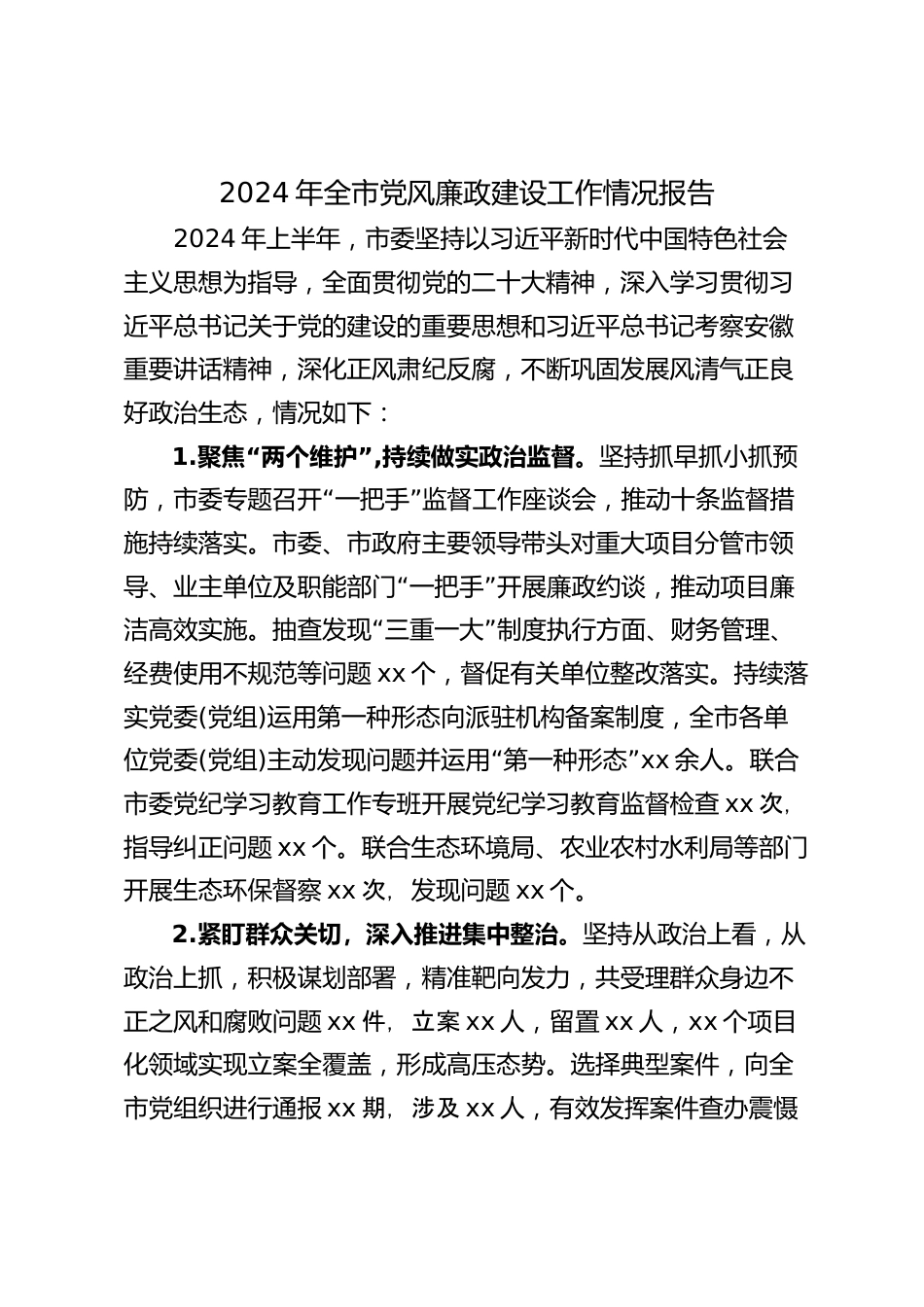 2024年全市黨風(fēng)廉政建設(shè)工作情況報(bào)告VIP免費(fèi)