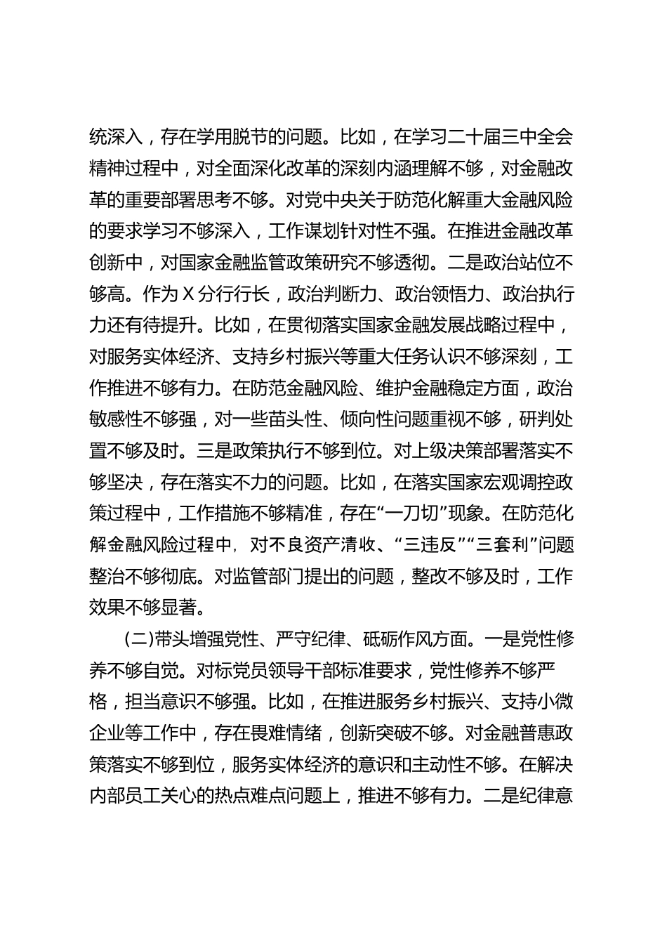 銀行行長2024年度民主生活會(huì)個(gè)人對照檢查材料(四個(gè)帶頭)VIP免費(fèi)