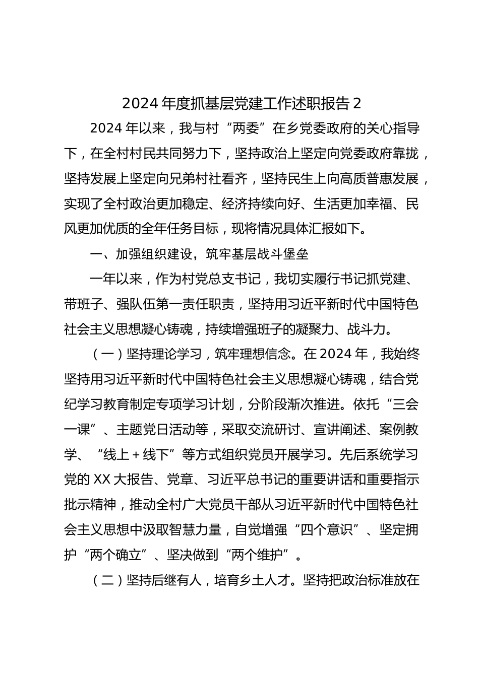 2024年度抓基層黨建工作述職報告2VIP免費(fèi)