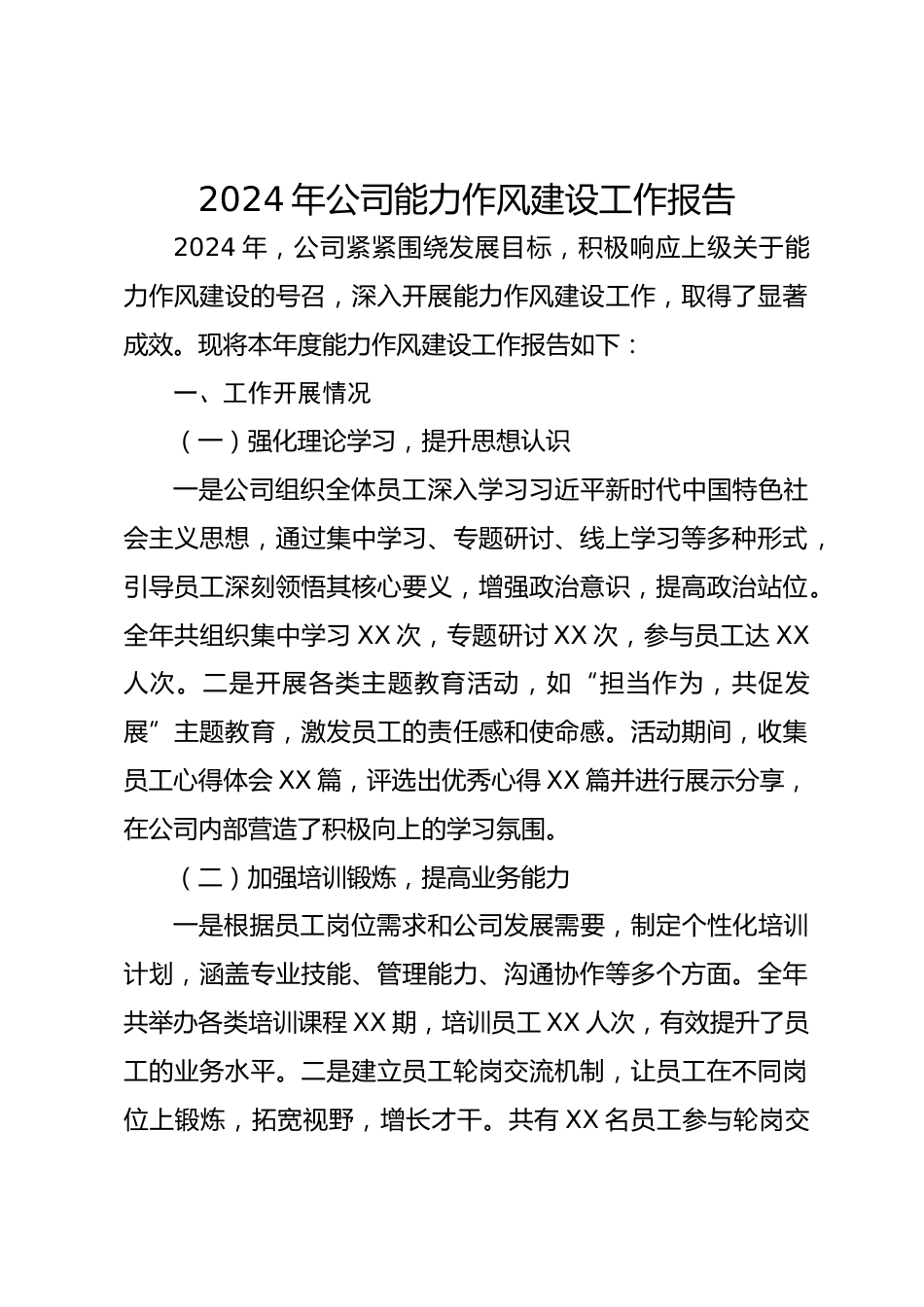 2024年公司能力作風(fēng)建設(shè)工作報(bào)告VIP免費(fèi)