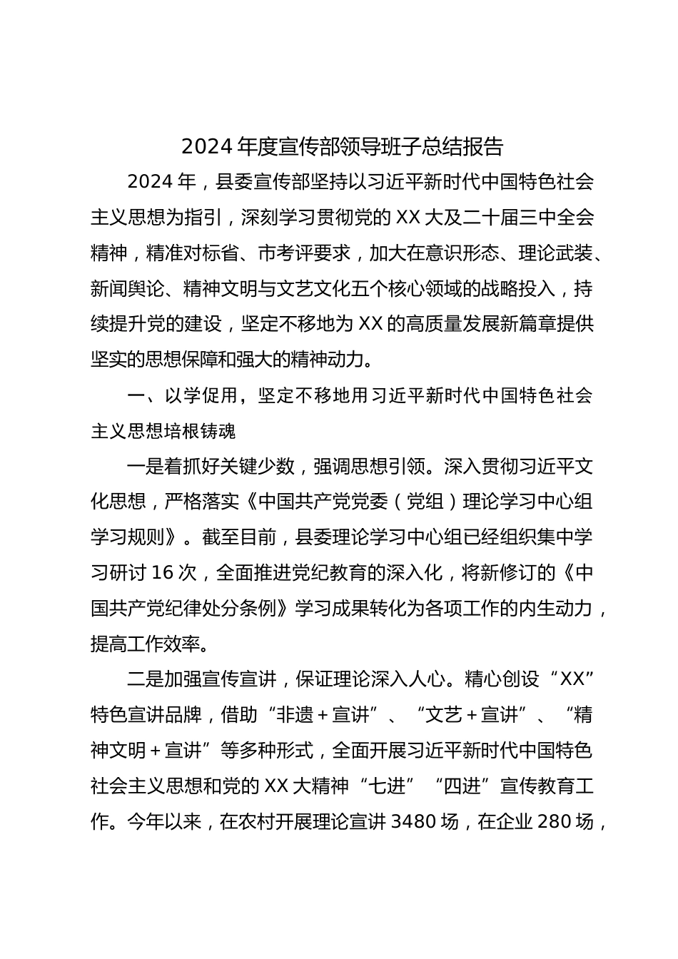 2024年度宣傳部領(lǐng)導(dǎo)班子總結(jié)報(bào)告VIP免費(fèi)