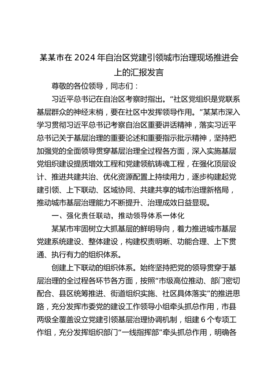 某某市在2024年自治區(qū)黨建引領(lǐng)城市治理現(xiàn)場(chǎng)推進(jìn)會(huì)上的匯報(bào)發(fā)言VIP免費(fèi)