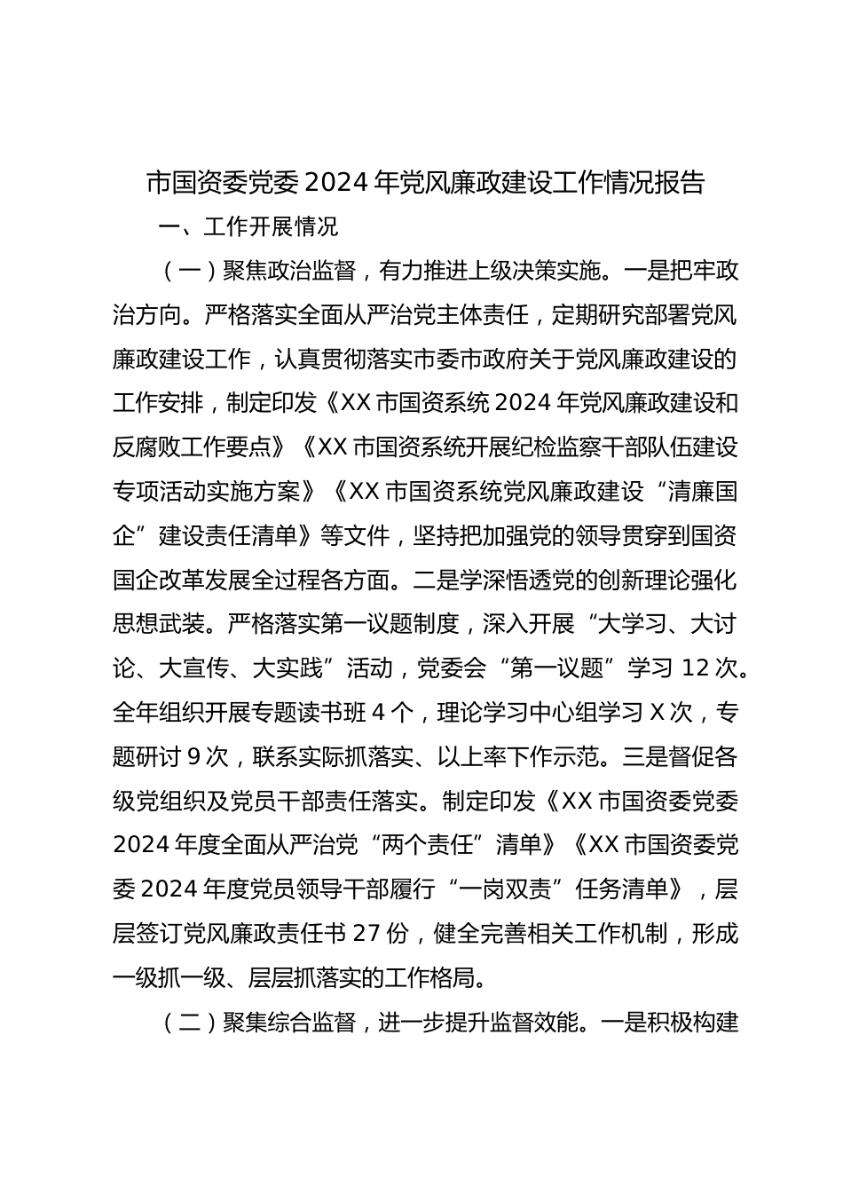 市國(guó)資委黨委2024年黨風(fēng)廉政建設(shè)工作情況報(bào)告VIP免費(fèi)
