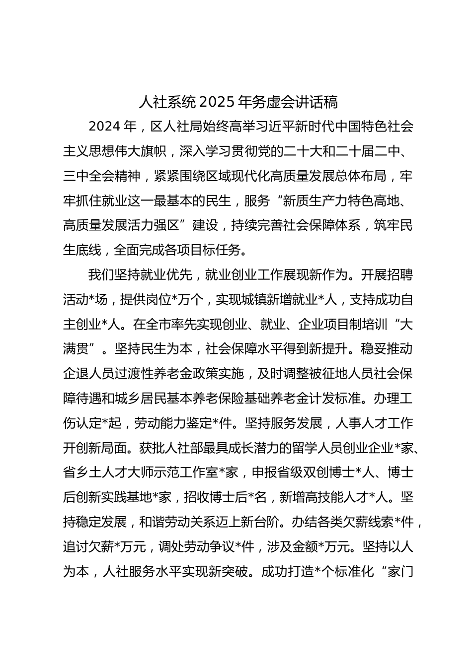 人社系統(tǒng)2025年務虛會講話稿VIP免費