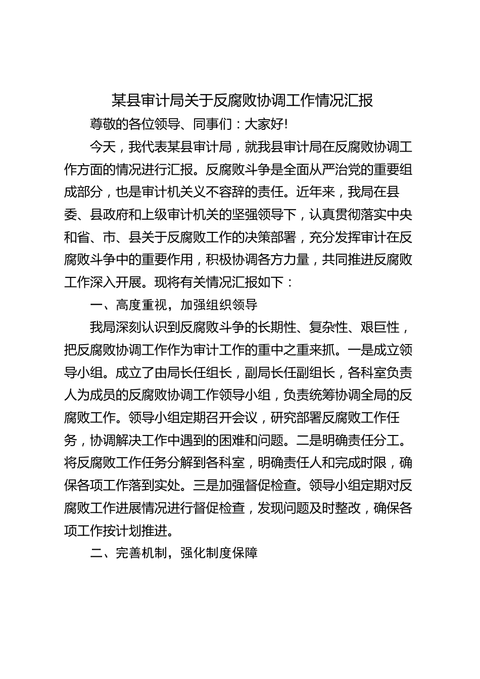 某縣審計(jì)局關(guān)于反腐敗協(xié)調(diào)工作情況匯報(bào)VIP免費(fèi)