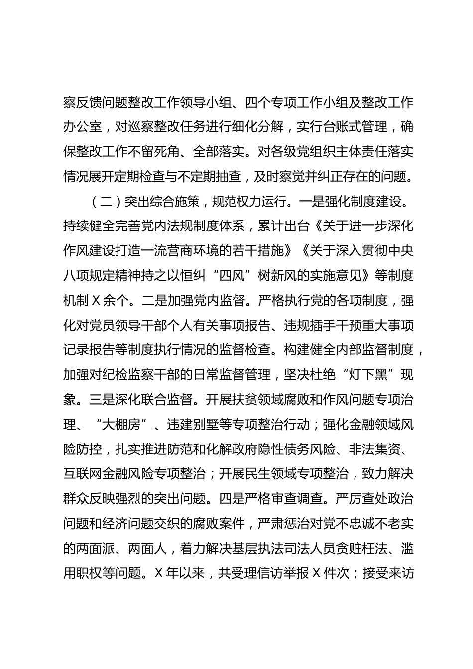 縣紀(jì)委年度落實(shí)全面從嚴(yán)治黨主體責(zé)任工作情況報(bào)告今年以來(lái),在上級(jí)紀(jì)委和縣委的有力領(lǐng)導(dǎo)下,縣紀(jì)委深入學(xué)習(xí)習(xí)近平新時(shí)代中國(guó)特色社會(huì)主義思想和黨的二十大精神,堅(jiān)決履行全面從嚴(yán)治黨主體責(zé)任,持續(xù)做好黨風(fēng)廉政建設(shè)和反腐敗斗爭(zhēng),為全縣經(jīng)濟(jì)社會(huì)的高質(zhì)量發(fā)展筑牢堅(jiān)實(shí)保障?,F(xiàn)將工作情況匯報(bào)如下:一、工作開(kāi)展?fàn)顩r(一)強(qiáng)化組織引領(lǐng),壓實(shí)主體責(zé)任。一是抓好貫徹學(xué)習(xí)??h紀(jì)委積極落實(shí)省委關(guān)于全面從嚴(yán)治黨的新部署新要求,及時(shí)召開(kāi)專題會(huì)議達(dá)X次,傳達(dá)學(xué)習(xí)中央紀(jì)委、省紀(jì)委、市紀(jì)委會(huì)議精神,深入分析形勢(shì),研究部署全市全面從嚴(yán)治黨工作,切實(shí)推動(dòng)工作落地。二是夯實(shí)...