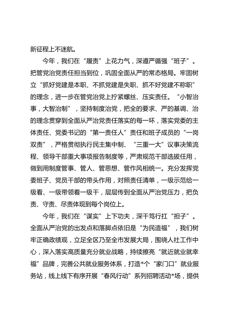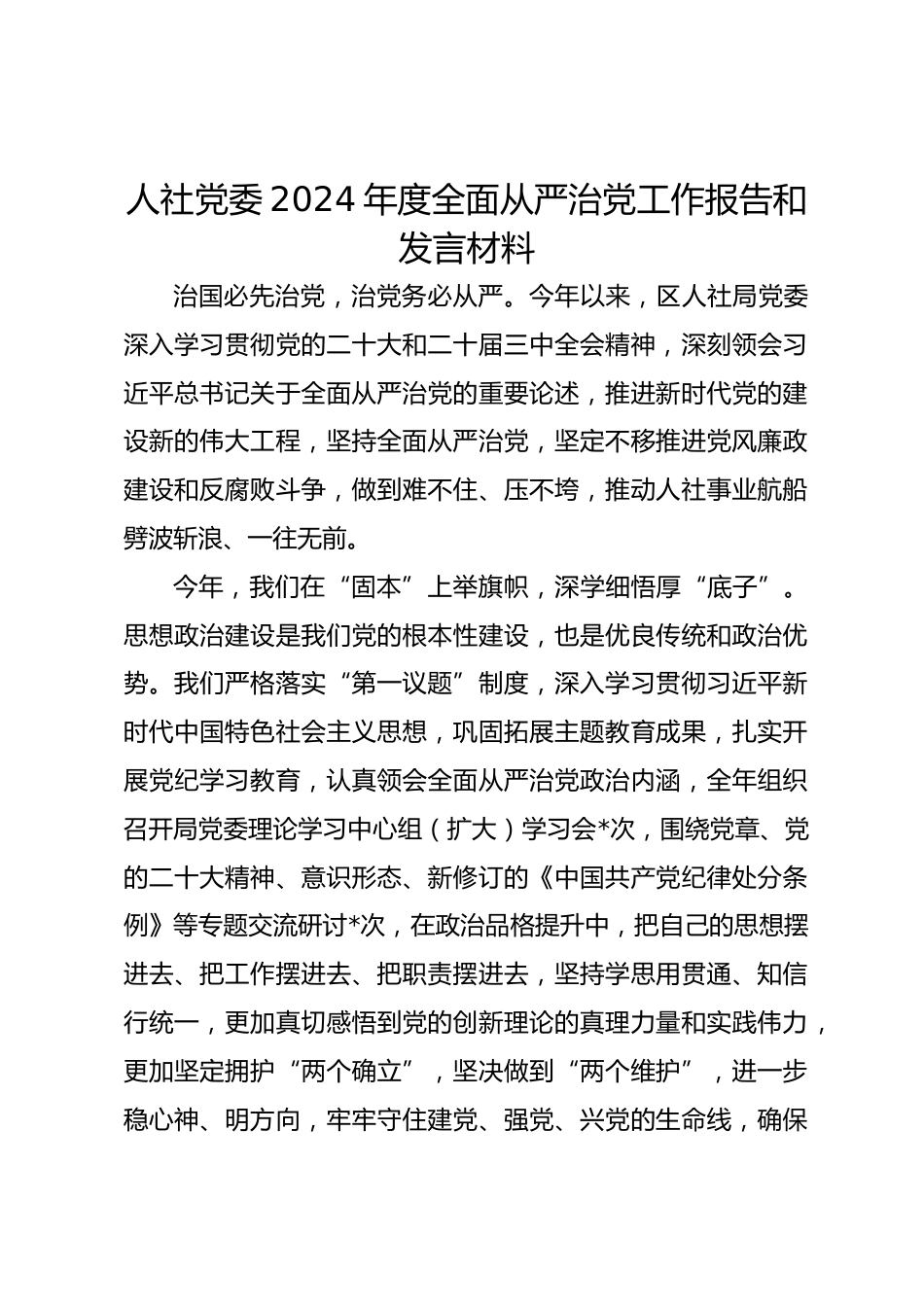 人社黨委2024年度全面從嚴治黨工作報告和發(fā)言材料VIP免費
