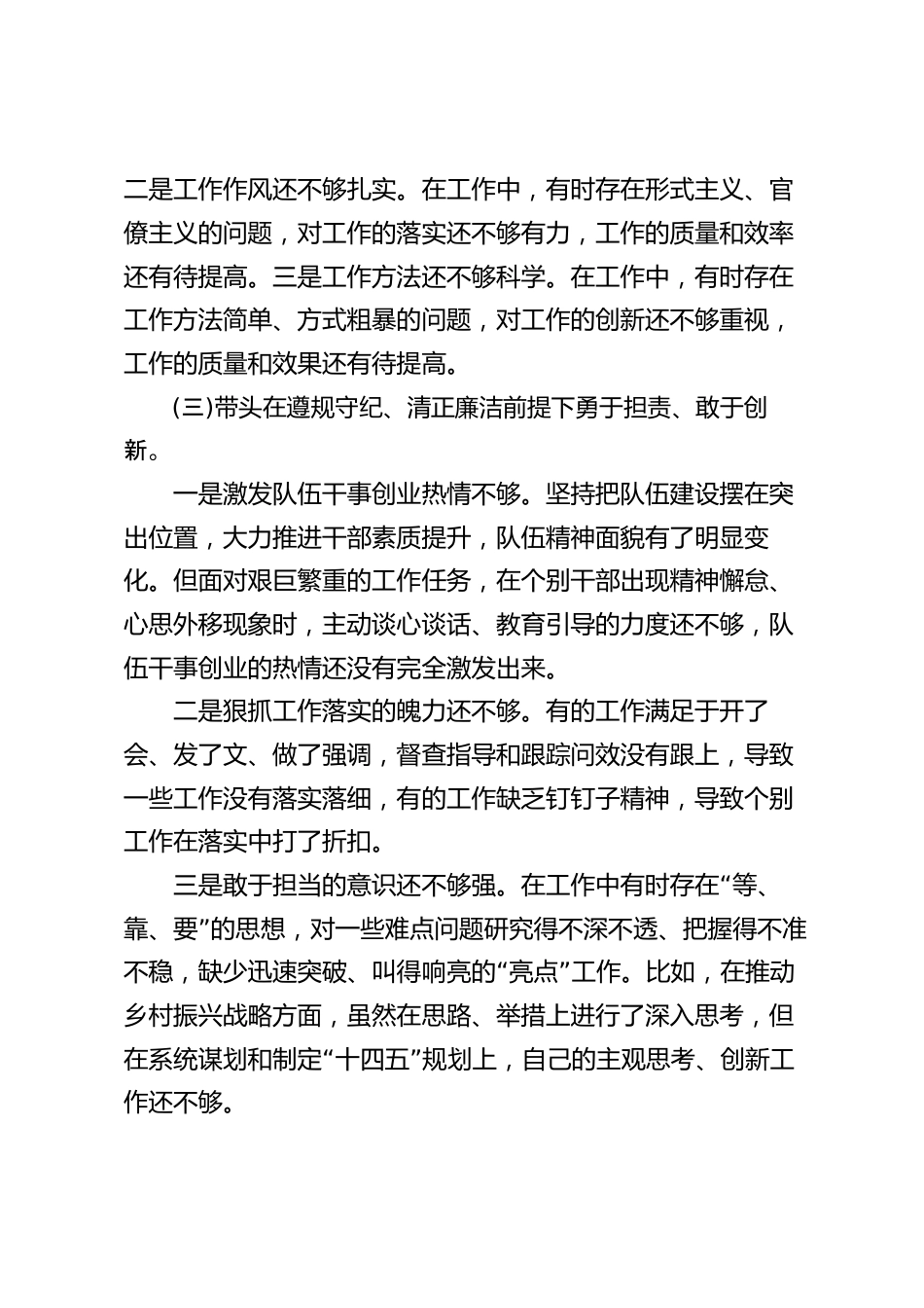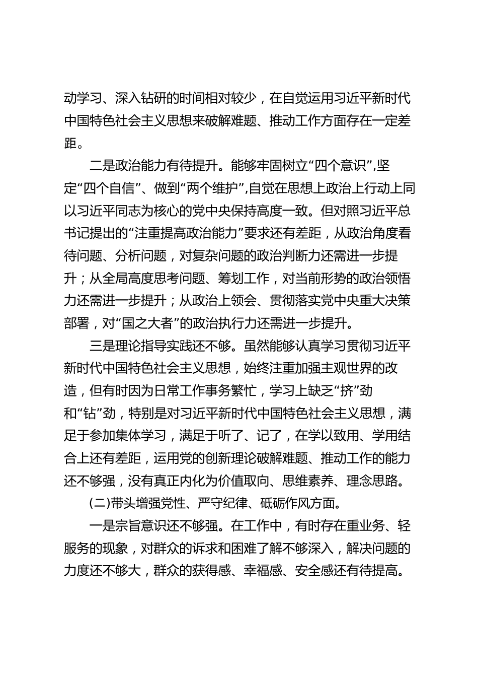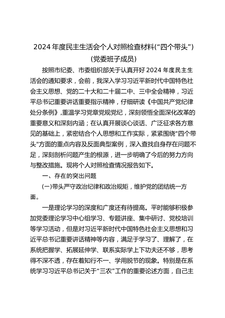 2024年度民主生活會個人對照檢查材料(“四個帶頭”)(黨委班子成員)VIP免費