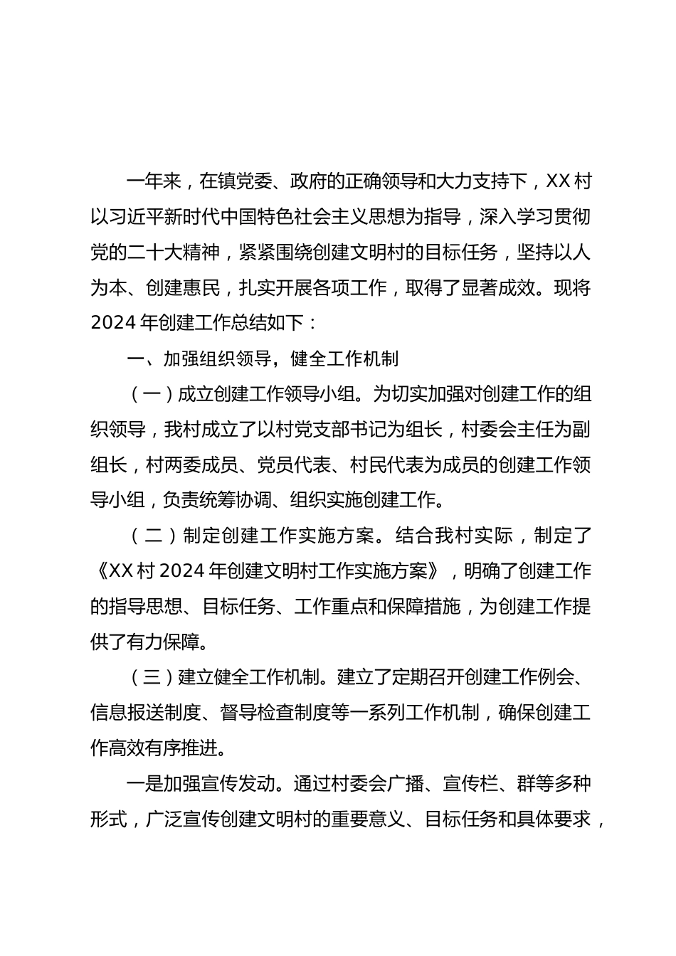 2024XX村創(chuàng)建文明村工作總結(jié)VIP免費(fèi)