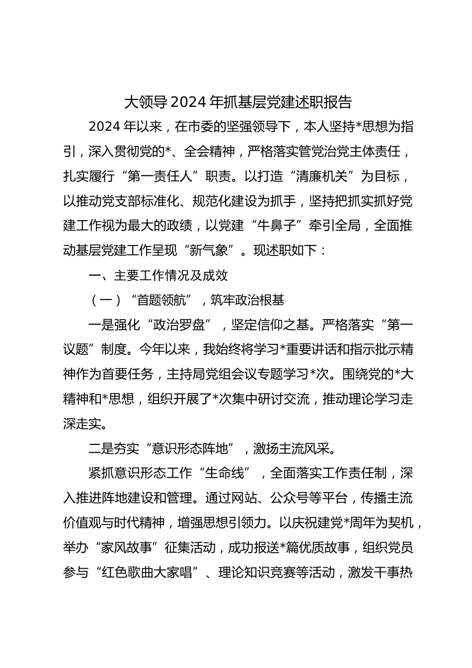 大領(lǐng)導(dǎo)2024年抓基層黨建述職報(bào)告VIP免費(fèi)