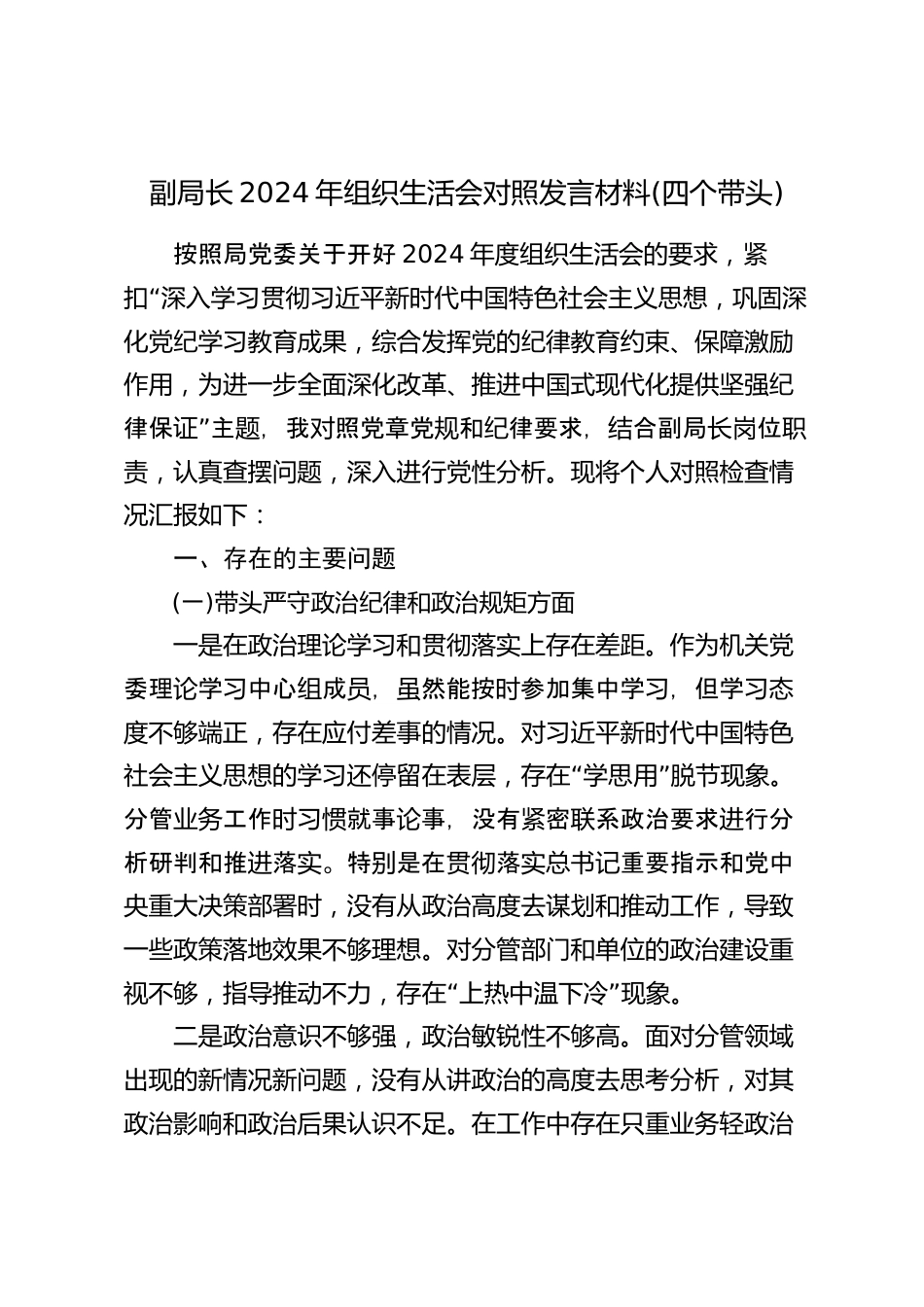 副局長2024年組織生活會對照發(fā)言材料(四個帶頭)VIP免費