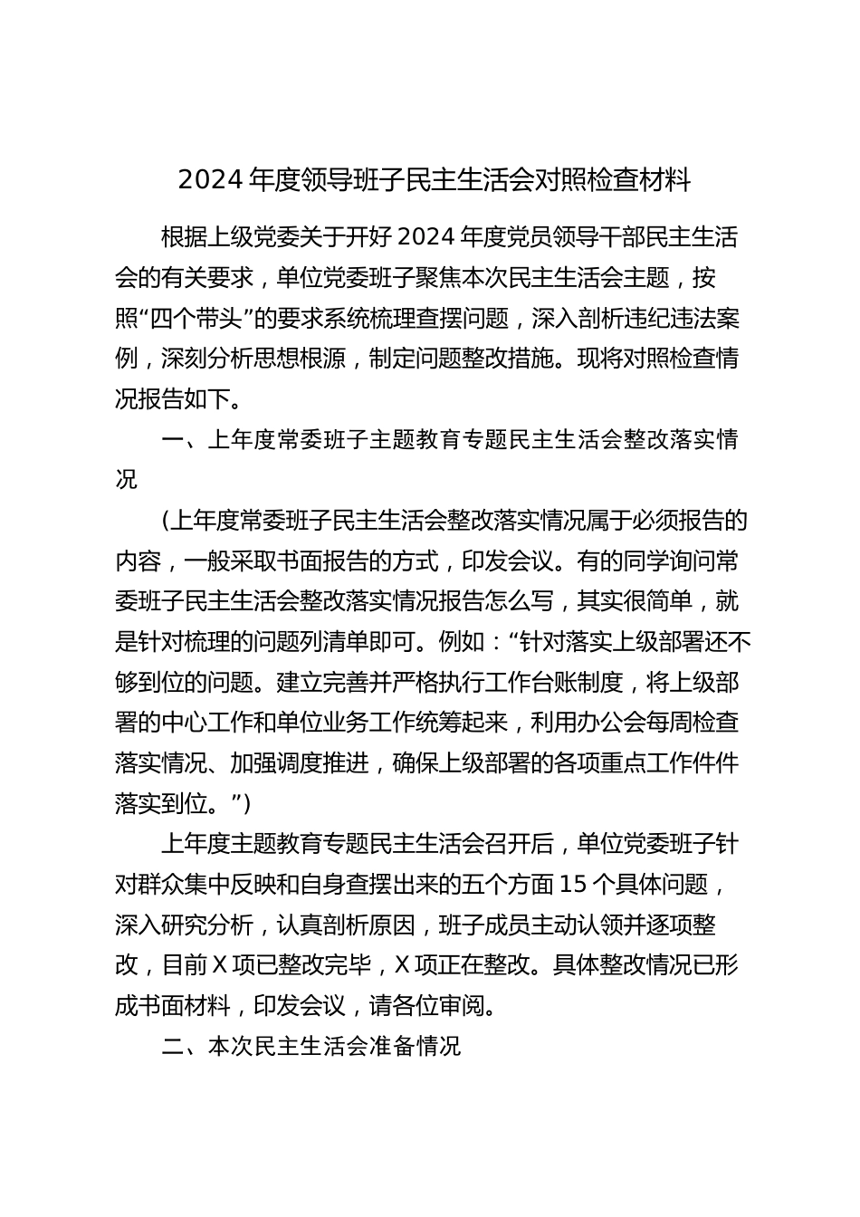 2024年度領(lǐng)導(dǎo)班子民主生活會(huì)對(duì)照檢查材料VIP免費(fèi)