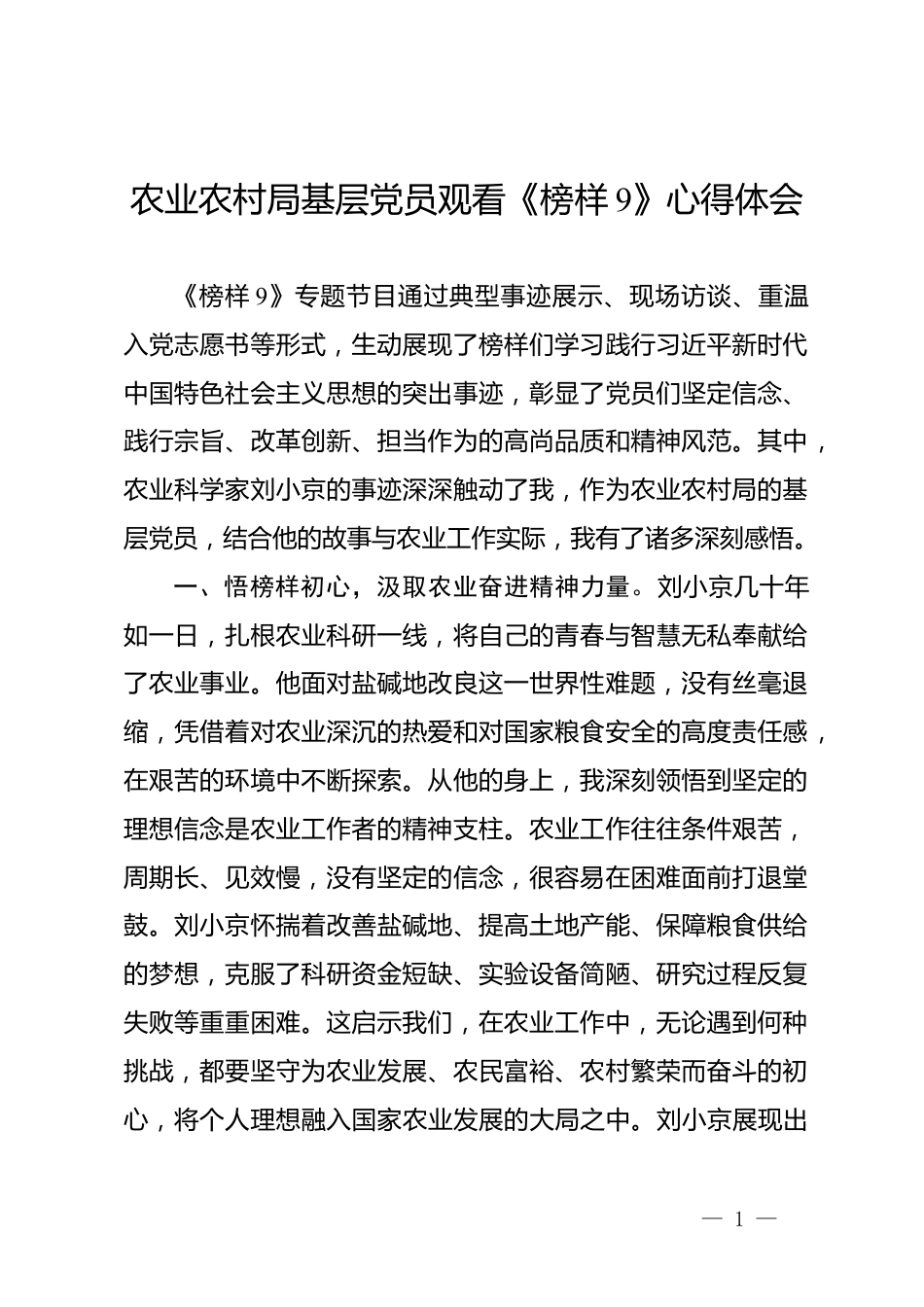 農(nóng)業(yè)農(nóng)村局基層黨員觀看《榜樣9》心得體會(huì)VIP免費(fèi)