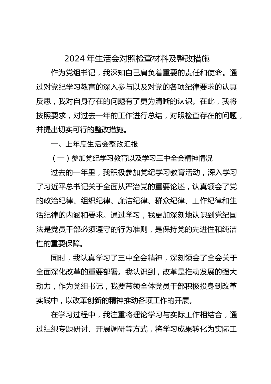 2024年黨組書記組織生活會對照檢查材料及整改措施VIP免費