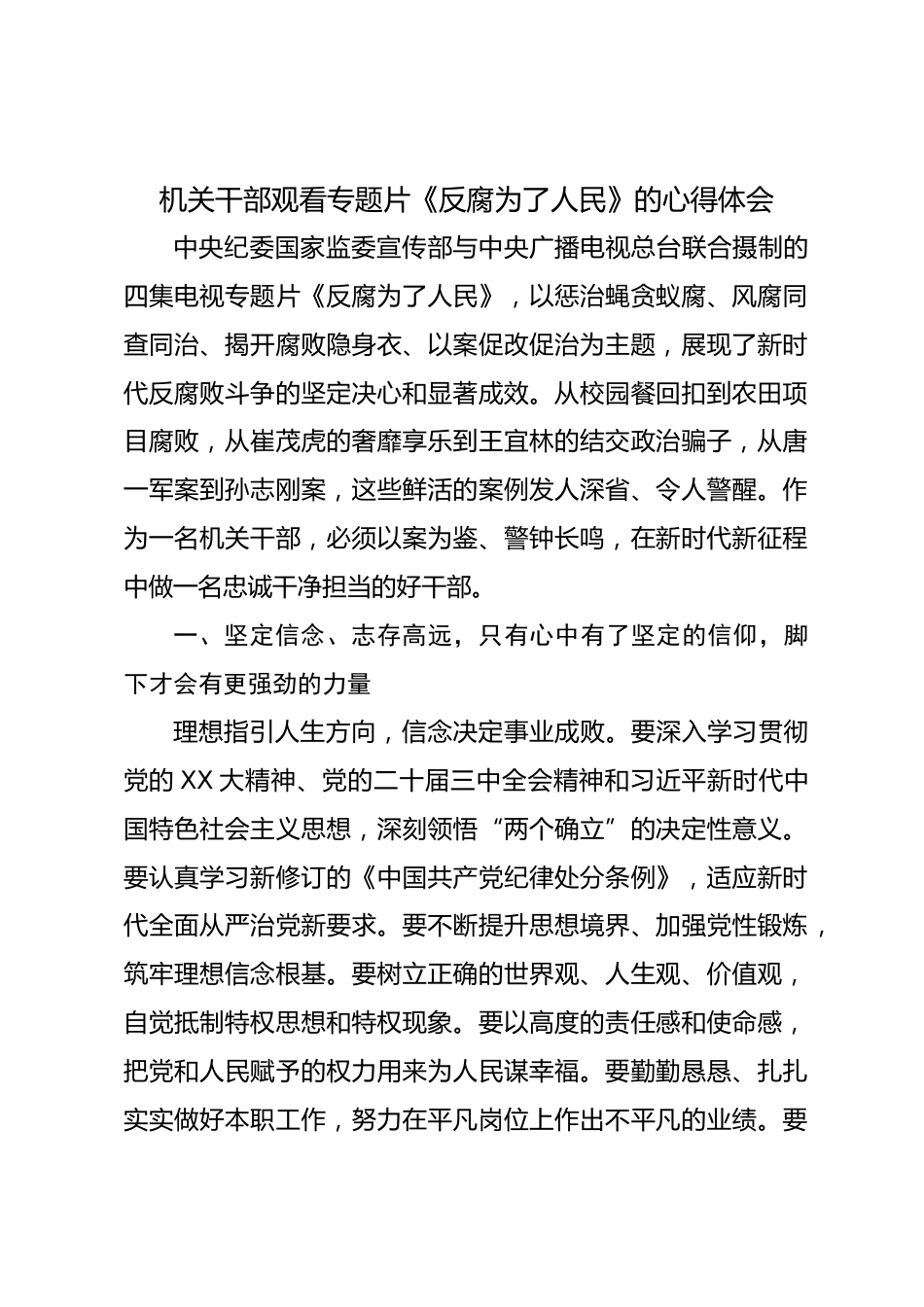 機關干部觀看專題片《反腐為了人民》的心得體會VIP免費