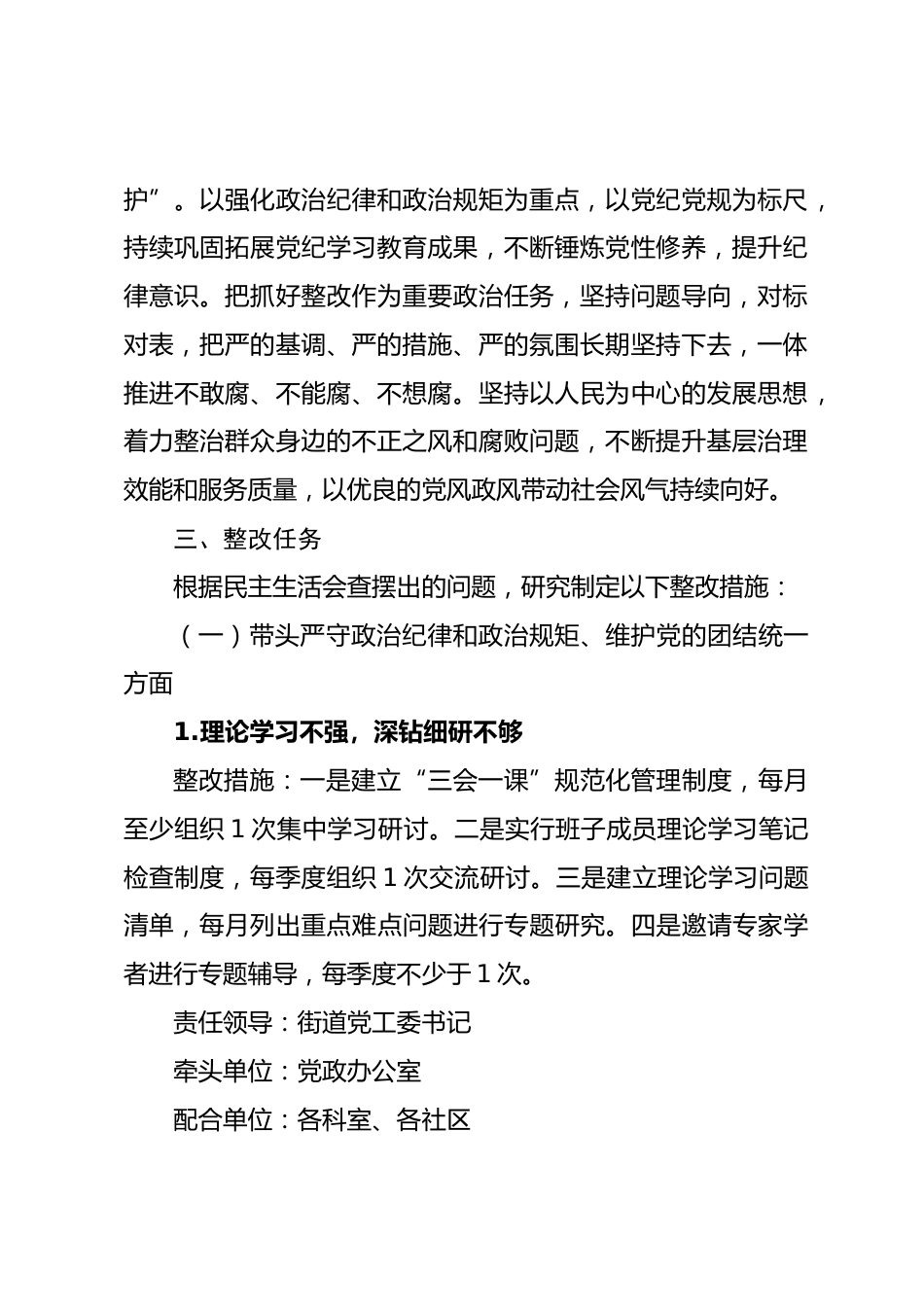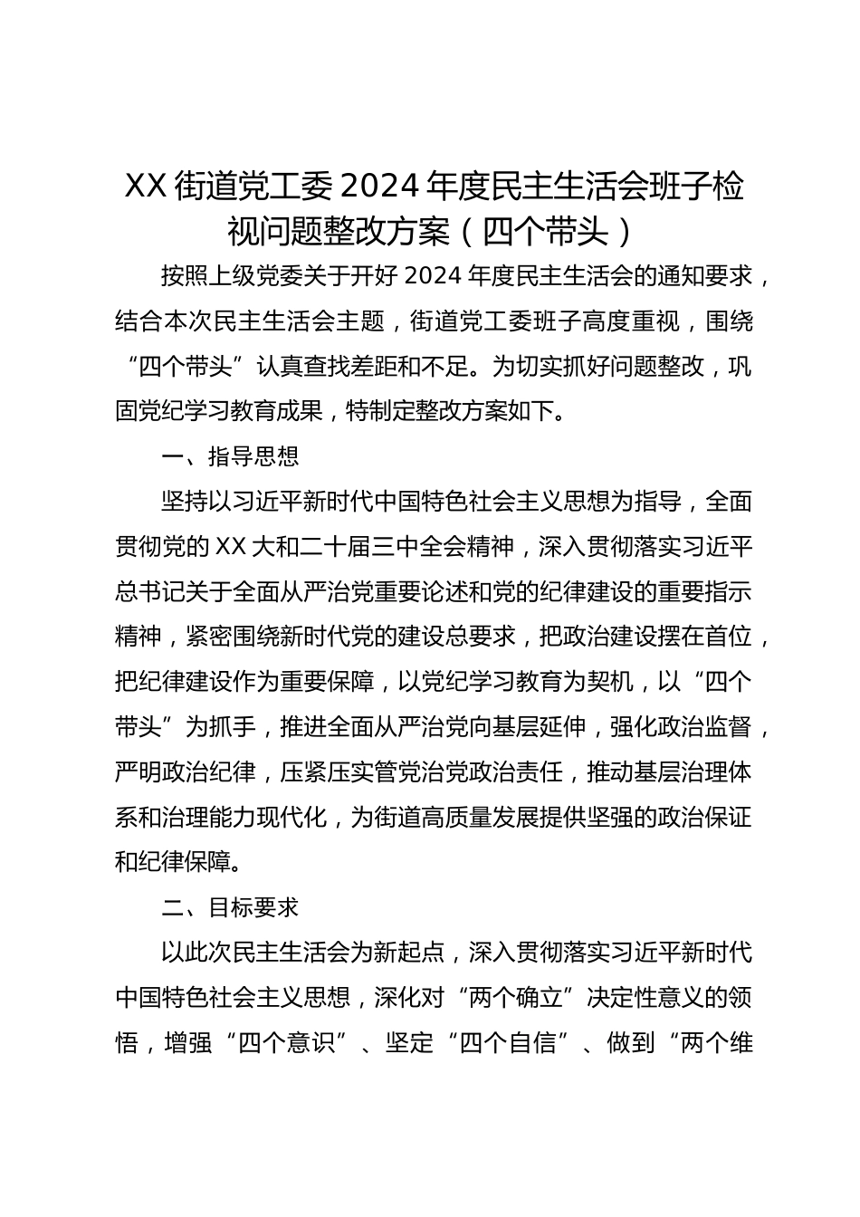 XX街道黨工委2024年度民主生活會班子檢視問題整改方案(四個帶頭)VIP免費