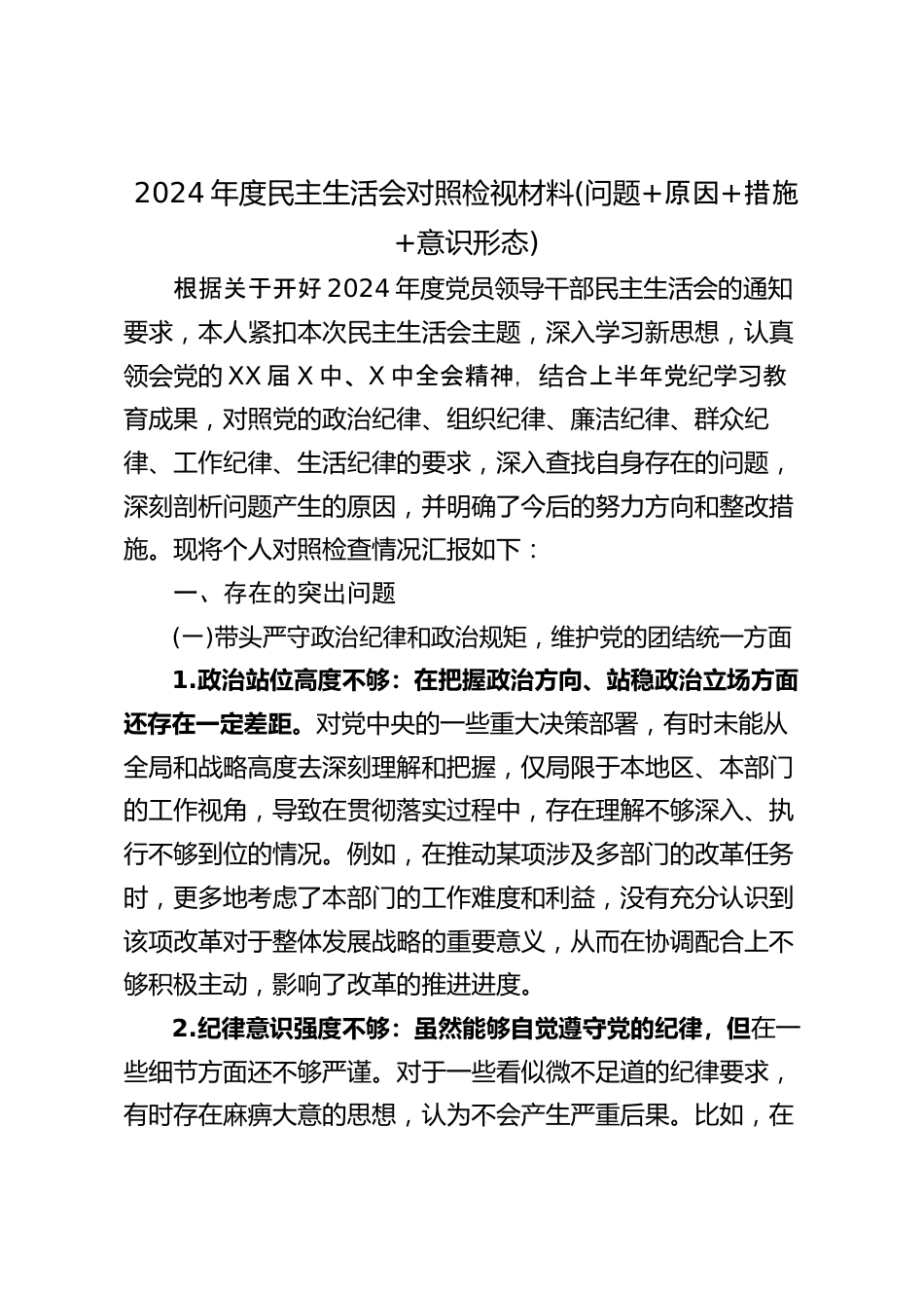2024年度民主生活會(huì)對(duì)照檢視材料 (問題+原因+措施+意識(shí)形態(tài))VIP免費(fèi)