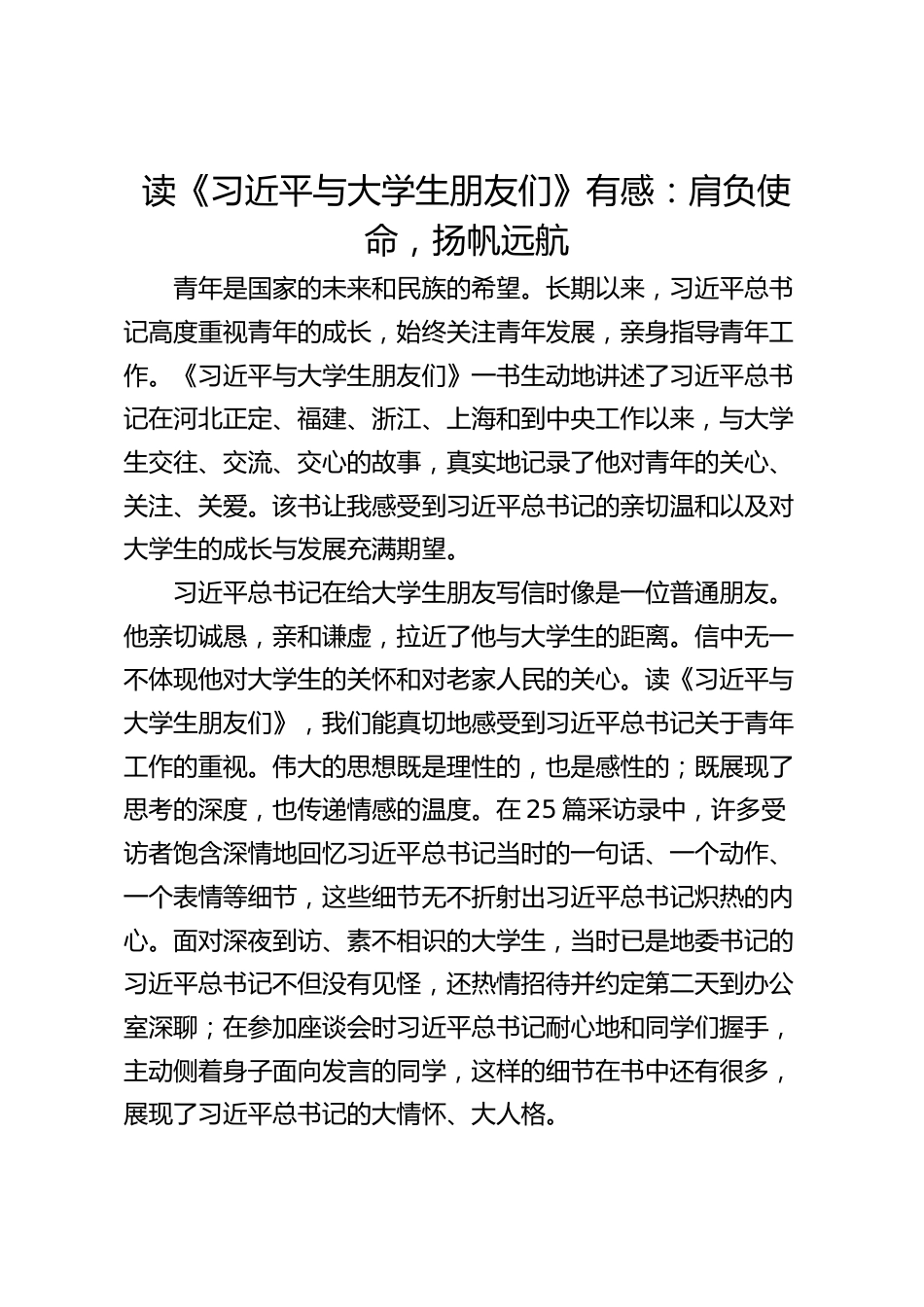 讀《習(xí)近平與大學(xué)生朋友們》有感:肩負(fù)使命,揚(yáng)帆遠(yuǎn)航VIP免費(fèi)