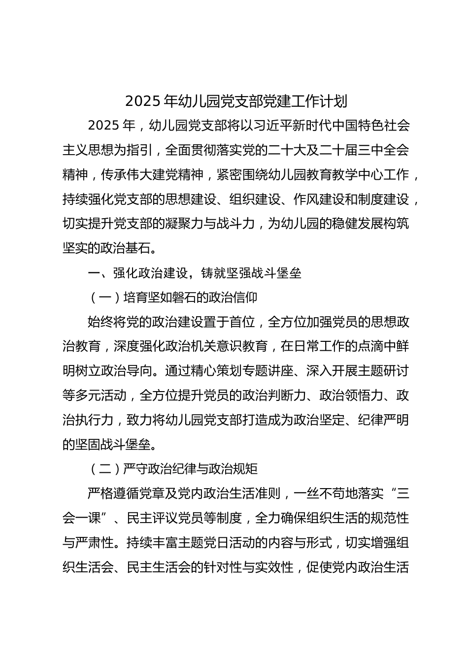 2025年幼兒園黨支部黨建工作計(jì)劃VIP免費(fèi)