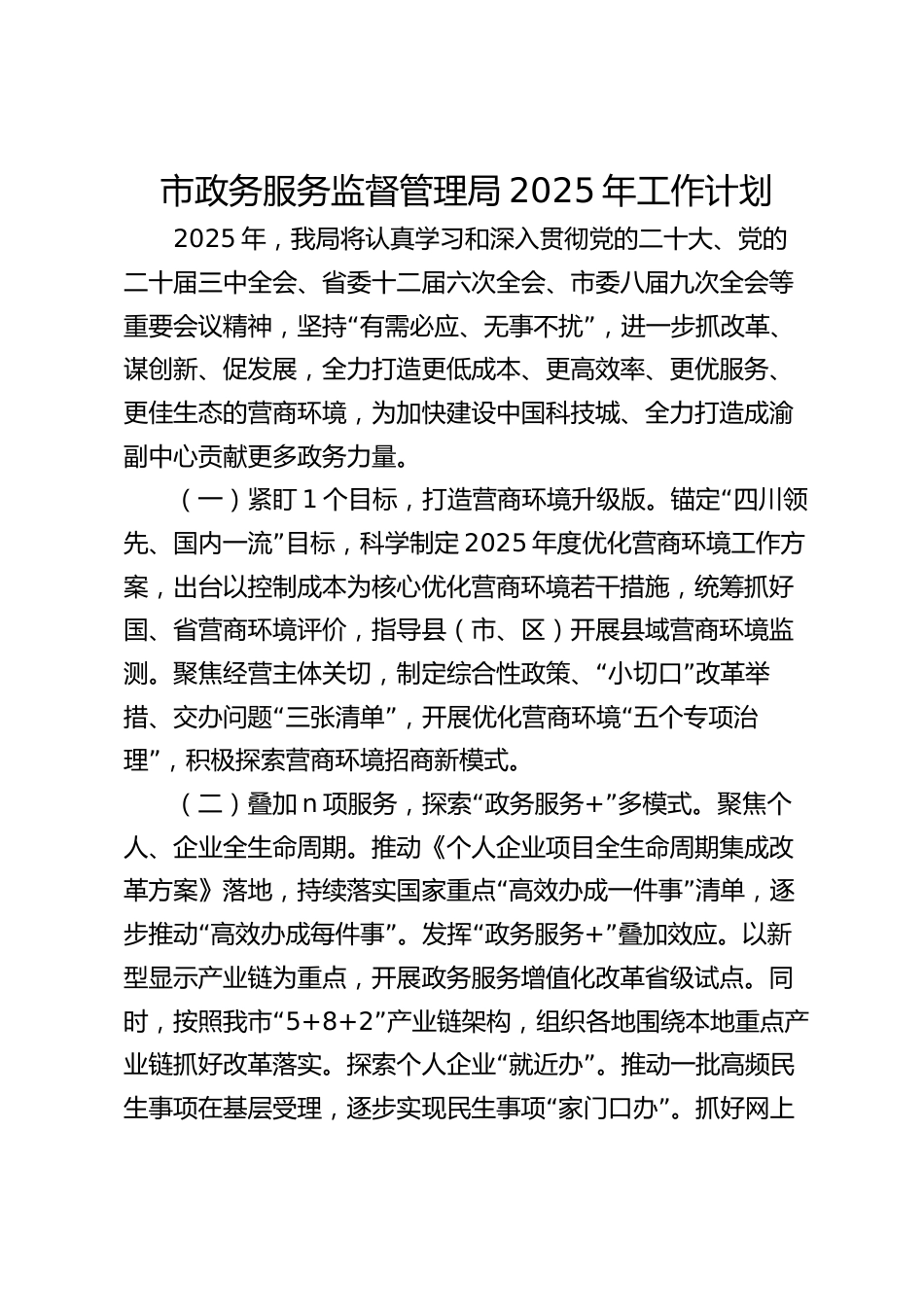 市政務(wù)服務(wù)監(jiān)督管理局2025年工作計(jì)劃VIP免費(fèi)