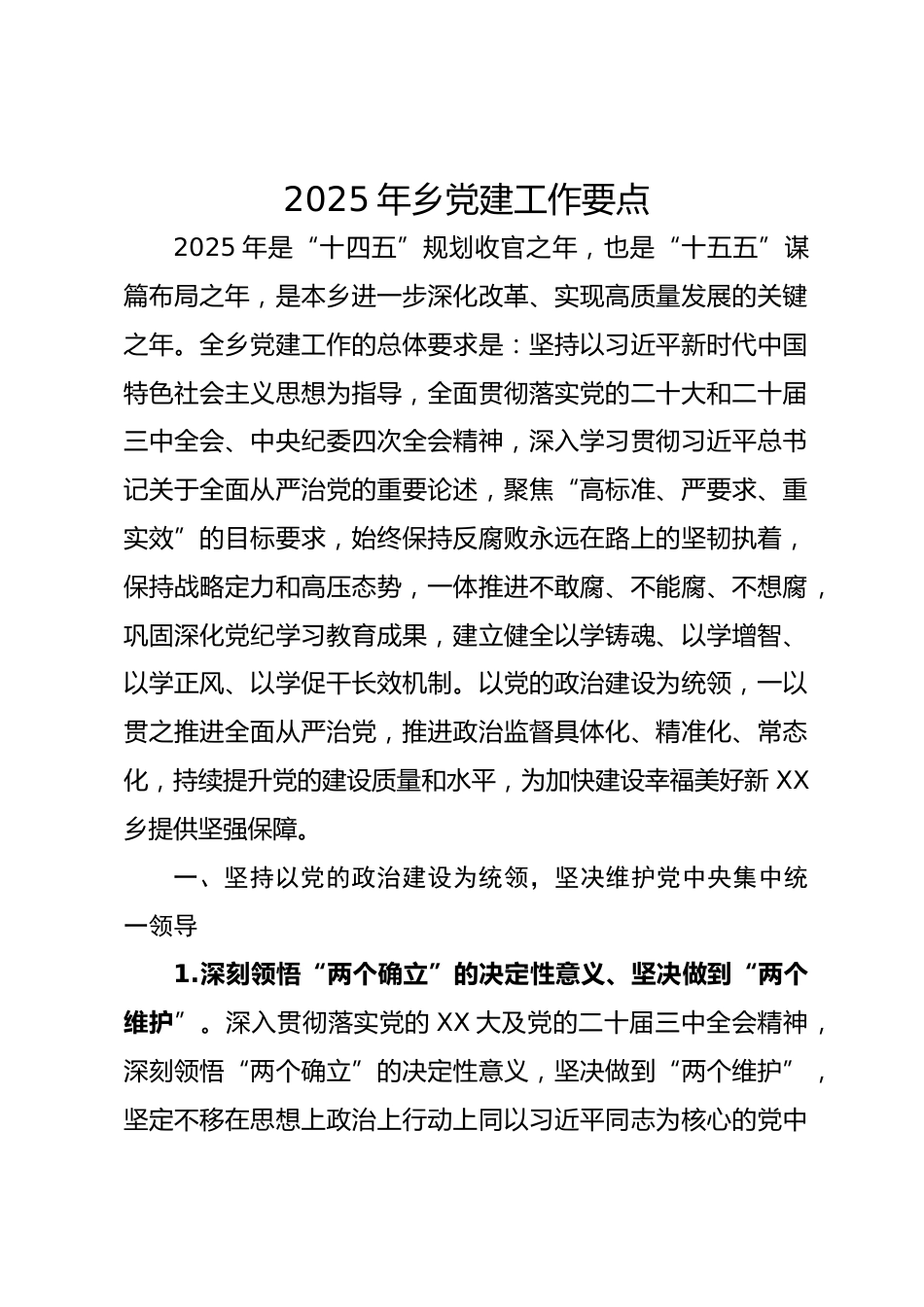 2025年鄉(xiāng)黨建工作要點VIP免費