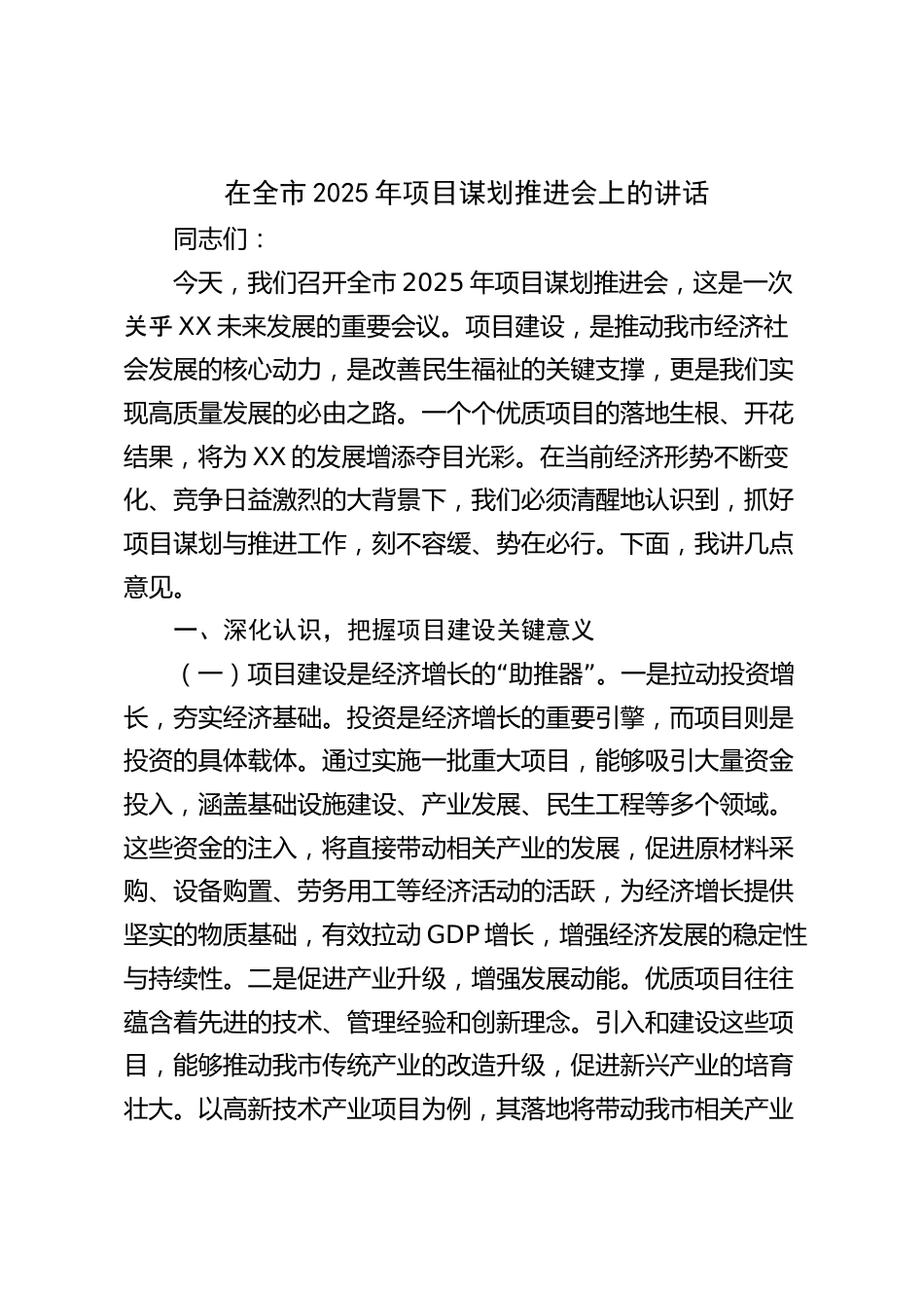 在全市2025年項目謀劃推進會上的講話VIP免費