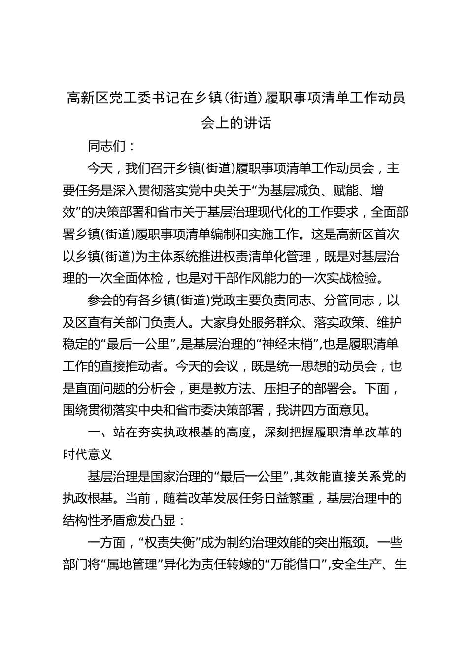 高新區(qū)黨工委書(shū)記在鄉(xiāng)鎮(zhèn)(街道)履職事項(xiàng)清單工作動(dòng)員會(huì)上的講話VIP免費(fèi)